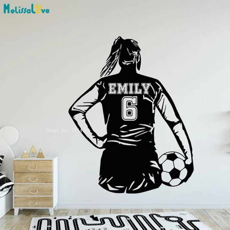 Наклейки на стену с именем и номером для девочек, виниловые наклейки с изображением футболиста для детской, самоклеящиеся, YT6135