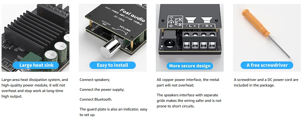 【Убедитесь, что эта плата усилителя Bluetooth имеет нижнюю пластину и верхнюю пластину, Поддерживает защиту обратного соединения, защиту от перенапряжения, защиту от перенапряжения, защиту от перегрева, защиту от короткого замыкания.