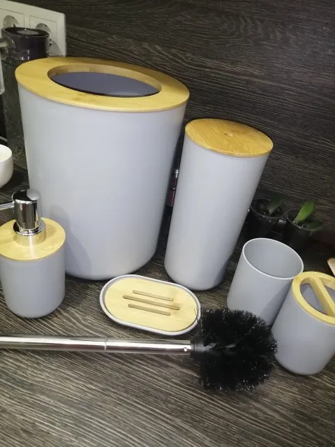 деревянные элементы сильно вывозят визуал этого набора. пластик средний, но все сделано аккуратно, все четко подходит когда собираешь. ведро для мусора немного маловато как по мне, но в целом набор отличный, спасибо. и доставка быстрая, получал в магазине пятёрочка, доставляли 5post