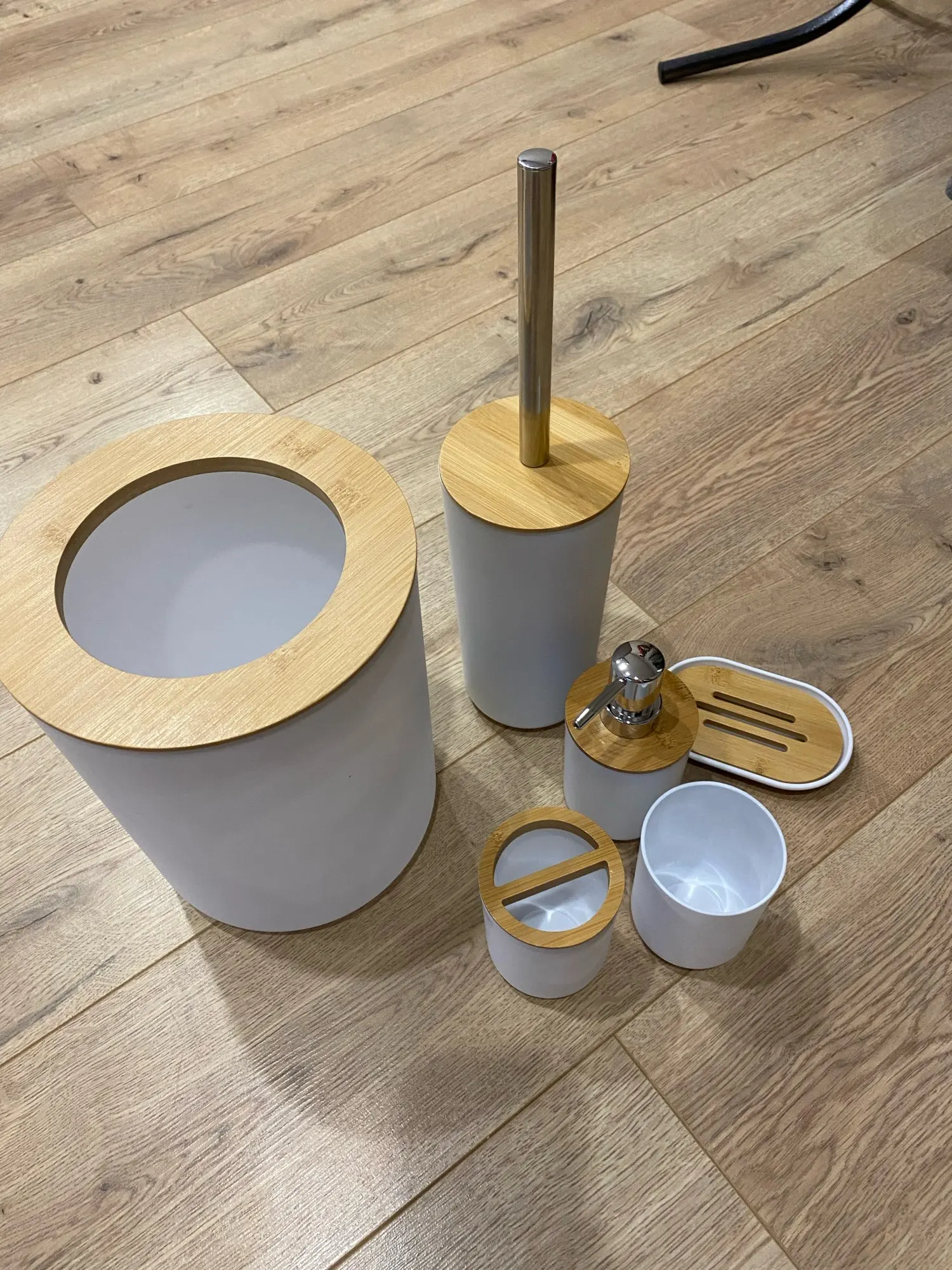 Набор аксессуаров для ванной комнаты из бамбука, набор из 6 предметов, держатель для зубных щеток, дозатор мыла, ёршик для туалета, Набор принадлежностей для ванной комнаты