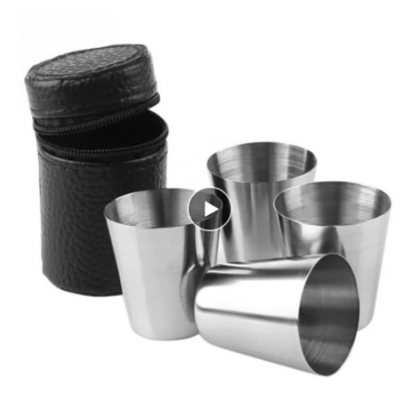 4 шт./компл., полированный 30 мл, мини-Стаканчик Из Нержавеющей Стали, бокалы для вина, с кожаным чехлом, сумка для дома, кухни, бара