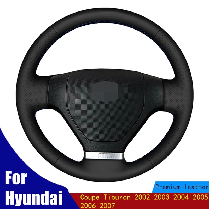 Чехол рулевого колеса автомобиля черная натуральная кожа для Hyunda...