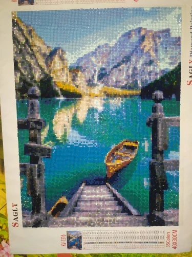 очень понравилось, все цвета страз в отдельных ЗИП пакетах, очень удобно, мне не хватило цвета №25, но в целом очень классно, только мне кажется цвета темноваты, приближённое фото сделанно со вспышкой, второе без. размер 30*40.пришло в постамат