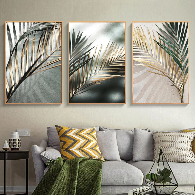 Nordic Золотой пальмовых листьев растений холст живописи ботанический Плакаты и принты настенные картины для гостиной настенный Декор без рамки