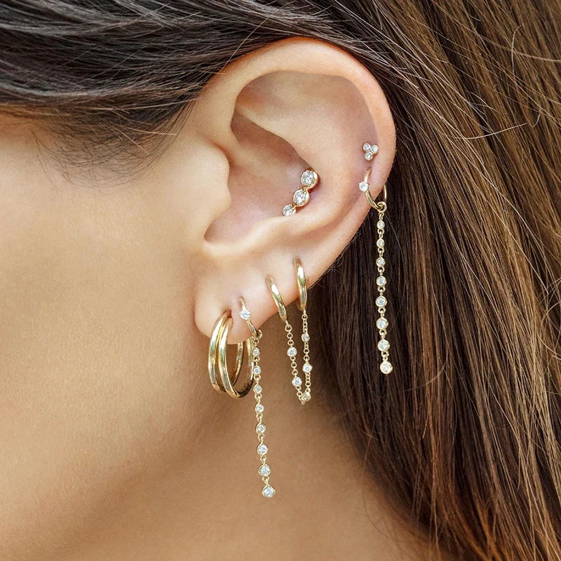 Серебро 925 пробы, корейский стиль, Хрустальная подвеска, цепочка, серьги-кольца, минималистичные CZ серьги, модные ювелирные изделия для женщин, подарки на день рождения