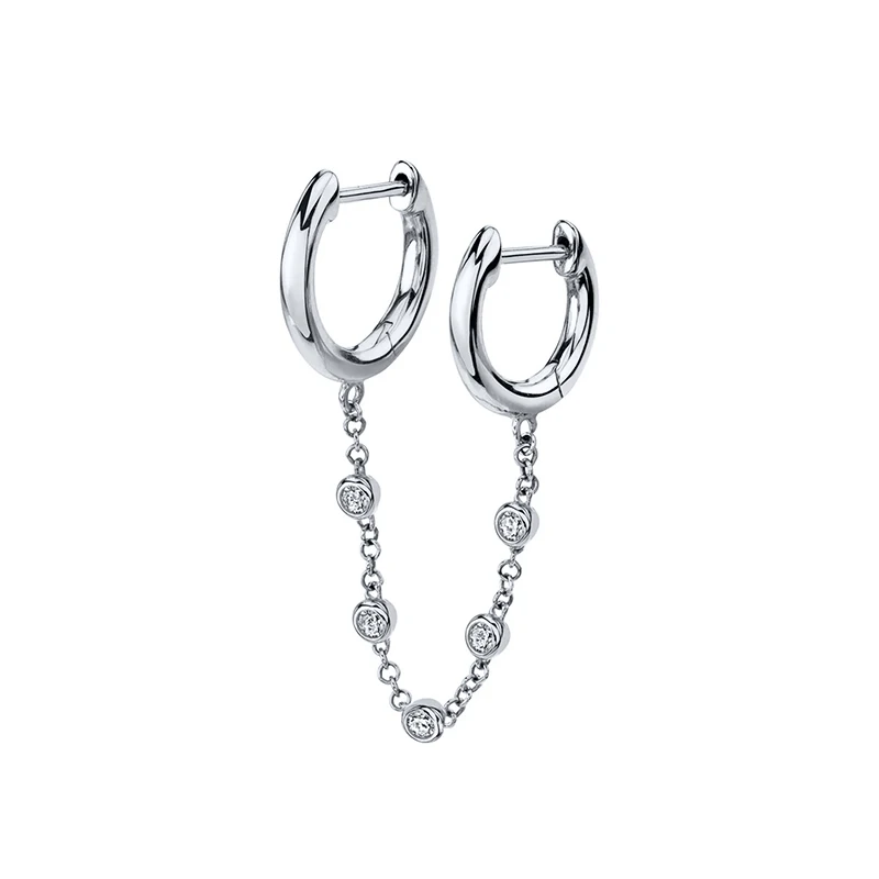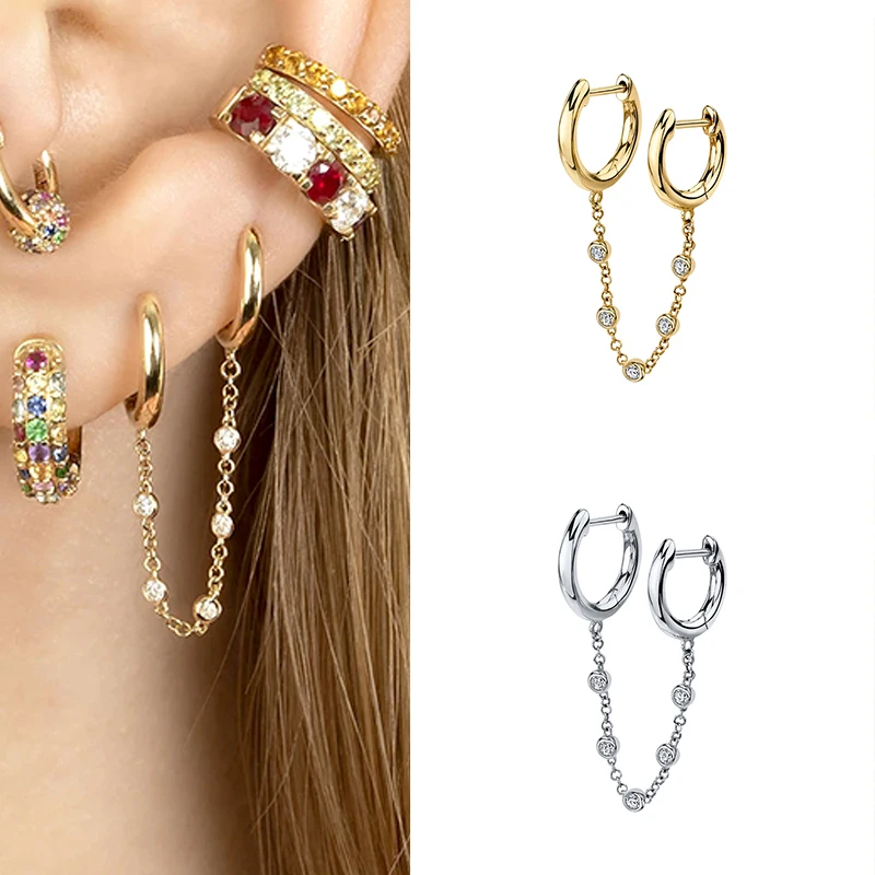 Женские серьги-кольца с двойной цепочкой, серьги-кольца из стерлинг...