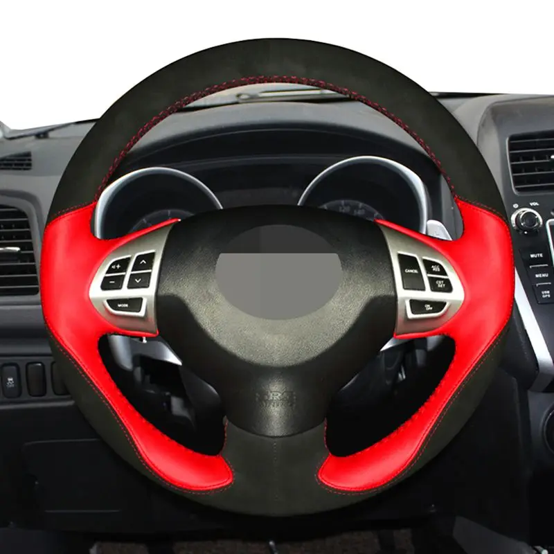 Черные замшевые ручные стежки чехол рулевого колеса автомобиля для Защитные чехлы для сидений, сшитые специально для Mitsubishi Lancer X 10 2007-2015 Outlander 2006-2013 ASX 2010-2013 пониt