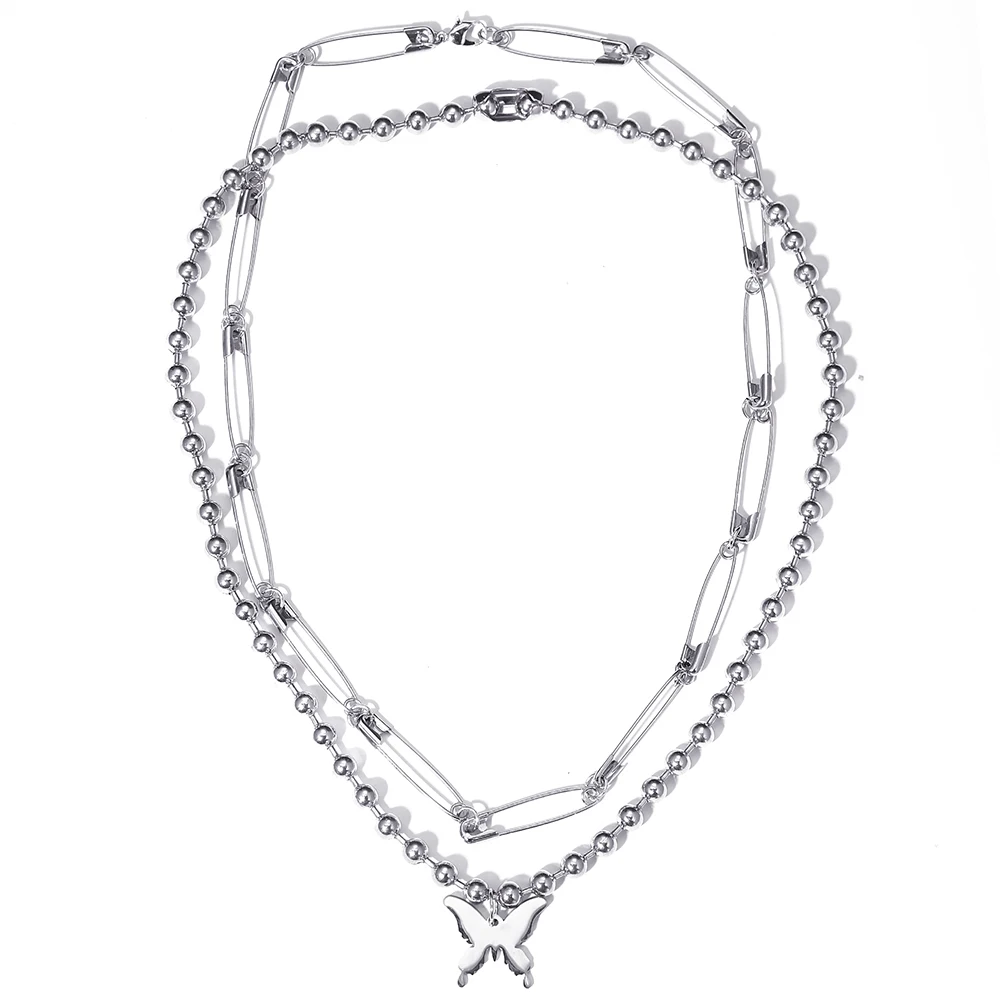 Модное ожерелье с булавкой 2 шт.компл. многослойное панк ожерелье с...
