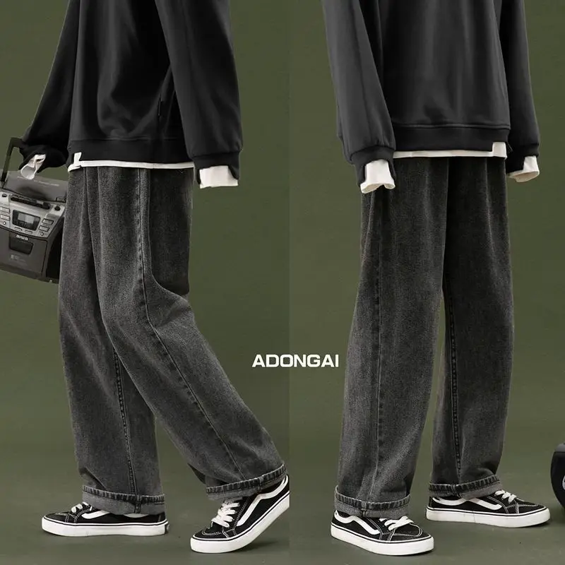 Джинсы мужскиеженские в стиле панк, свободные прямые джинсы в стиле уличной моды, корейские брюки с широкими штанинами для студентов, весна-осень