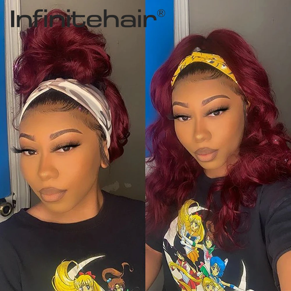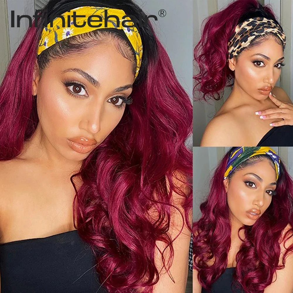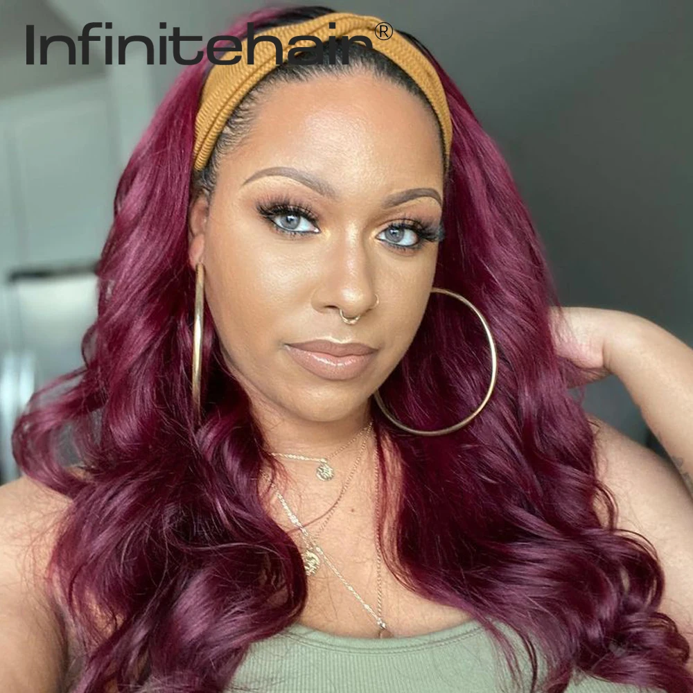 Бразильская бордовая головная повязка с волнистыми волосами, безклеевой шарф, Remy, человеческие волосы, парик для черных женщин, дружественный для начинающих