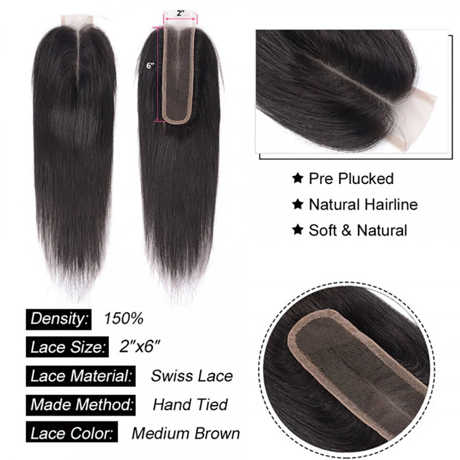 Пряпряди с застежкой, средняя часть 2x6, кружевная застежка и перуанские волосы Remy, 30-дюймовые прямые человеческие волосы для наращивания