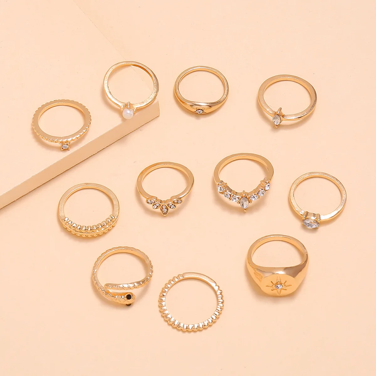 Модный комплект колец в стиле бохо с кристаллами для женщин, геомет...