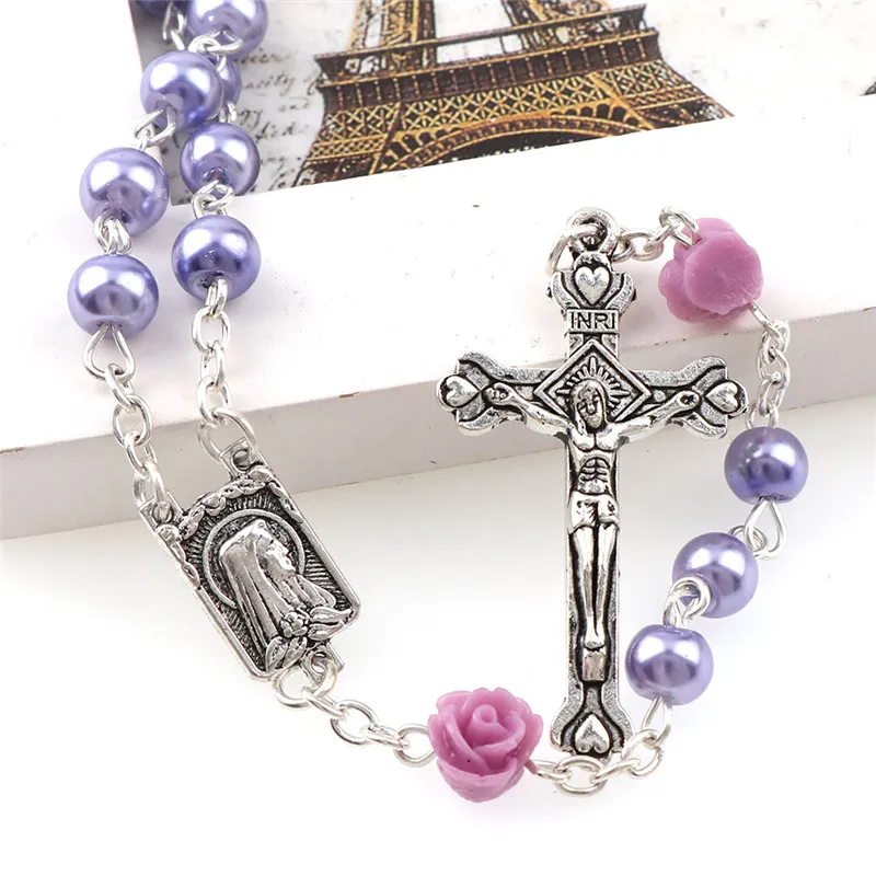 Женская цепочка ручной работы с крестом и розам, ожерелье унисекс с Христом, Иисусом, религиозными христианскими молитвами, ювелирные аксессуары