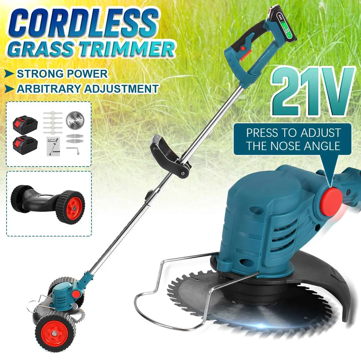 Посылка входит:1 * хост1/2 * батарея (Для аккумулятора Makita 21 в)Включает5 * пластиковое лезвие2 * металлические лезвия1 * Набор для разборки1*4-дюймовое полотно циркулярной пилы1 * Руководство пользователя на английском языке1 штекерное зарядное устройство(1 * вилка-адаптер, в зависимости от страны доставки)Посылка входит:1 * хост5 * пластиковое лезвие2 * металлические лезвия1 * Набор для разборки1*4-дюймовое полотно циркулярной пилы1 * Руководство пользователя на английском языке1 штекерное зарядное устройство(1 * вилка-адаптер, в зависимости от страны доставки)Посылка входит:1 * основание с одним роликомОсобенности:● Три лезвияПластиковые лезвия, металлические лезвия, лезвия из сплава для удовлетворения потребностей различных сценариев● Сильная мощностьНе заклинивает, легко косит на большой площади● Мощный двигатель с двумя подшипникамиПередний и задний двойные Подшипники обладают высокой мощностью, а косание более гладкое, 220 высокотемпературный эмалированный провод, высокая термостойкость и длительный срок службы● Эргономичная и удобная ручкаМягкое резиновое покрытие не имеет технологии заусенцев, его удобно держать, и оно очень удобно в использовании● Многоугольная Регулируемая косая головкаРегулируемый под разными углами, подходит для разных сцен. Скашивание, обрезка и озеленение. Удобнее в использовании, удобнее увеличивать кнопку регулировки угла● Дизайн с защитой от травыПрощайте с карточной травой, используйте более эффективно, вдали от неприятностей● Телескопическая трубкаЛегко носитьХарактеристики:Вилка (опция): вилка ЕС/вилка СШАСтиль (опция): 2/батарея/одно роликовое основаниеМощность: 650 ВтСкорость: 12000 об/минАккумулятор: для аккумулятора Makita 21 вМатериал: нейлон + стальная трубаДлина телескопическая: 86-115 см/33,9-45,3 дюйма
