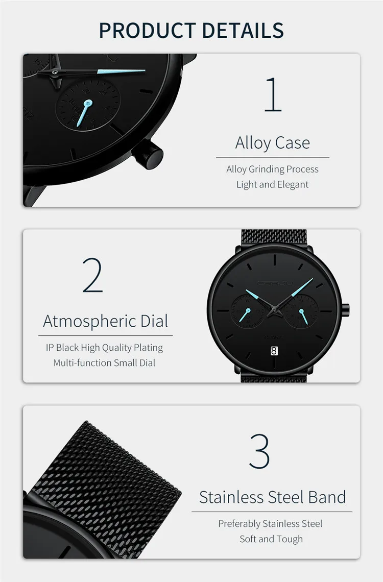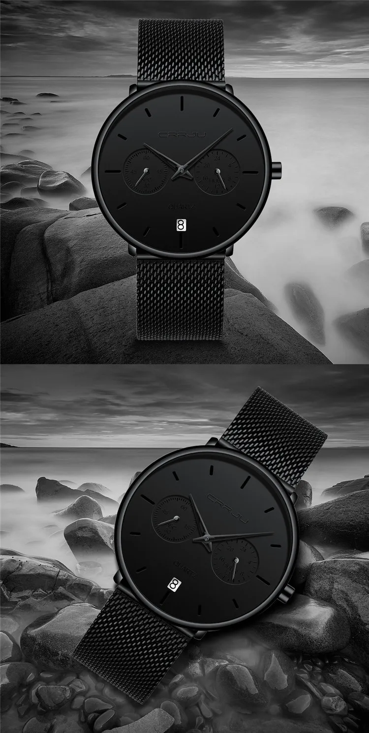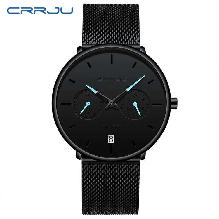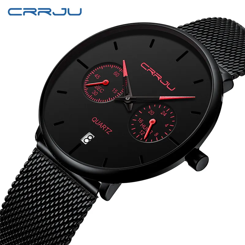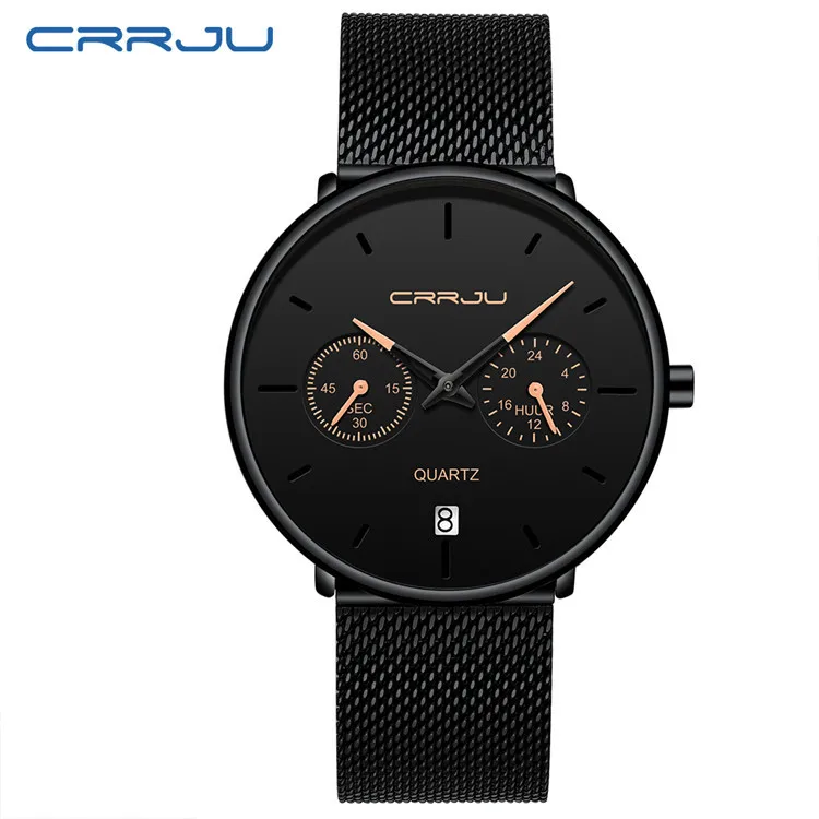 CRRJU 2162 классические мужские часы из нержавеющей стали водонепроницаемые мужские Спортивные кварцевые наручные часы с календарем