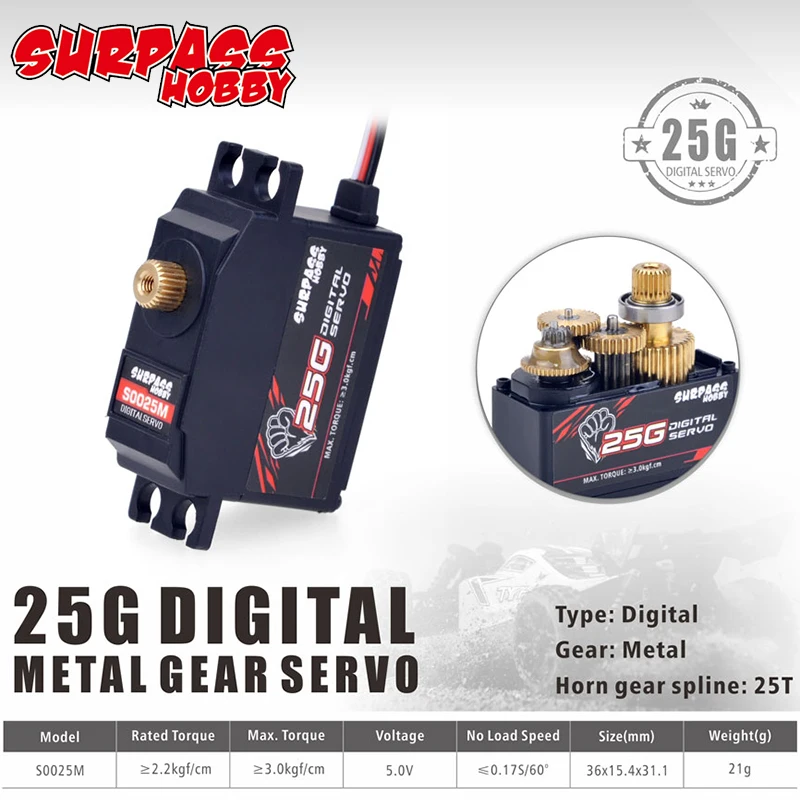 Сервопривод SURPASS Hobby Digital servo S0025M, металлическая Шестерня 25 г, сервопривод для РУ самолета, робота 12428, Ру монстра, автомобиля 112, обновленная версия 12423
