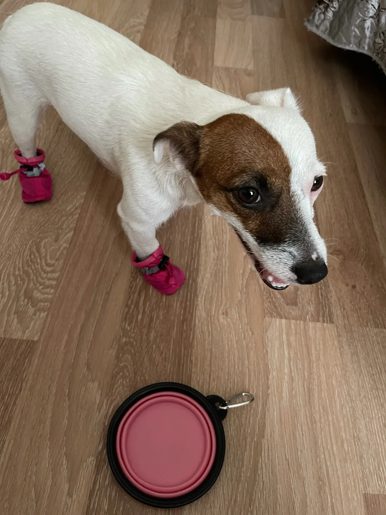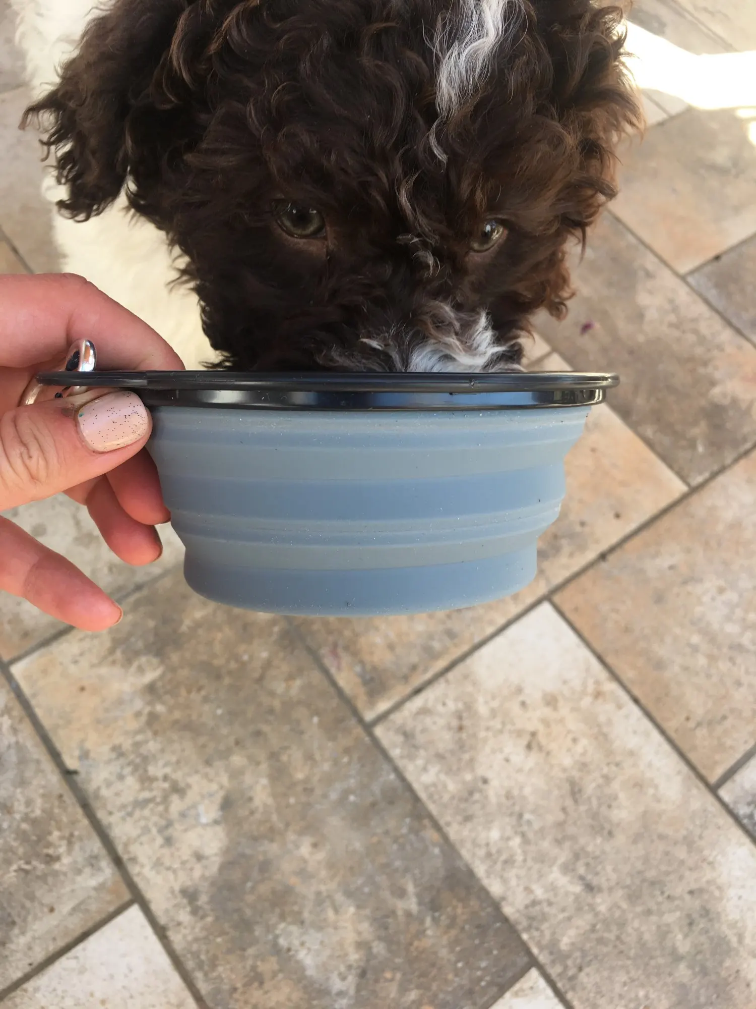 Идеальный размер для собачьей еды или питья! Отлично подходит для ношения в рюкзаке или сумке, потому что он складывается!