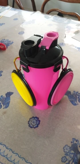 Очень удобная поилка , компактный размер позволяет носить в сумочке , иногда цепляю карабин за сумку или одежду . Хороший и нужный товар.