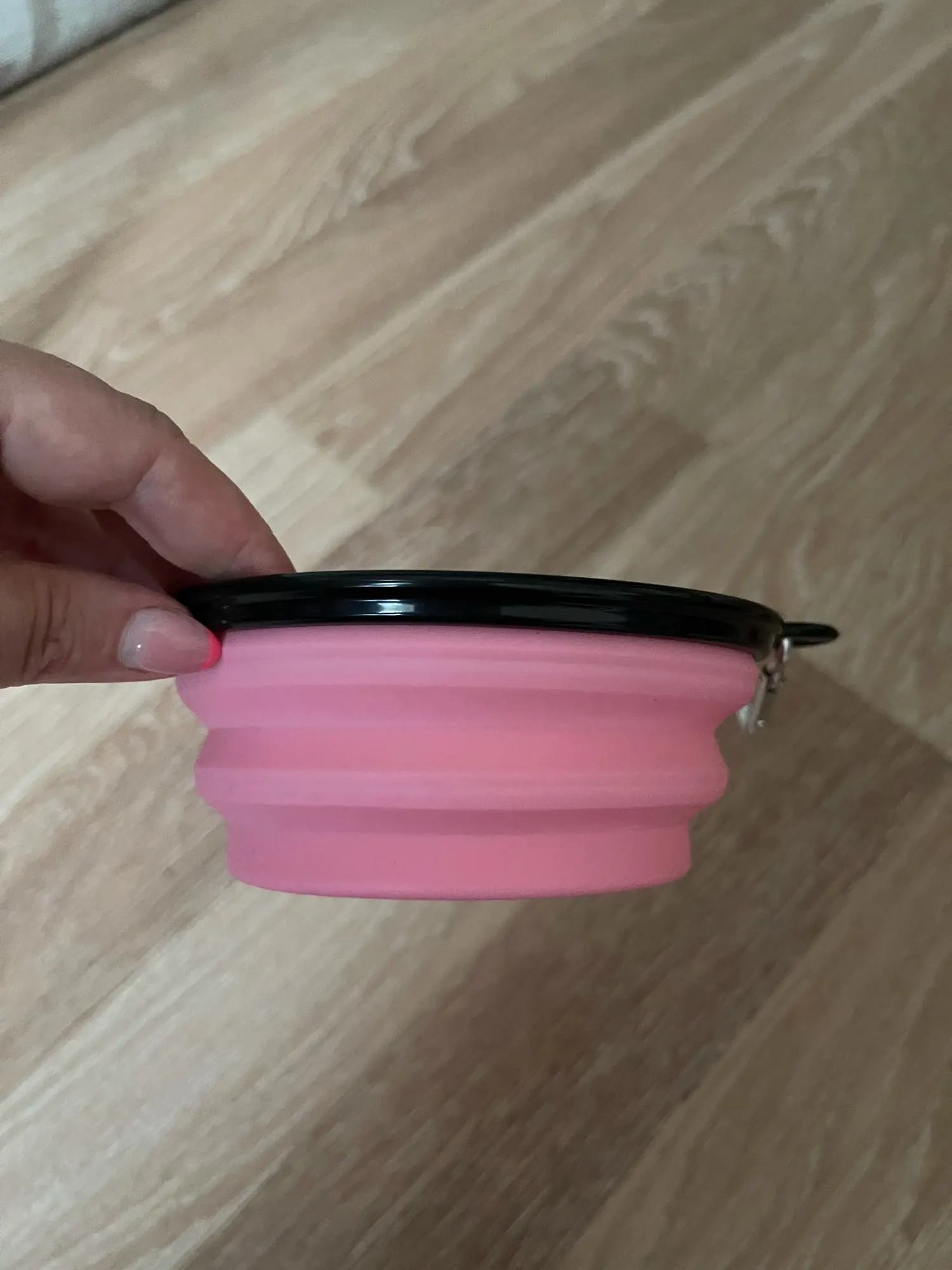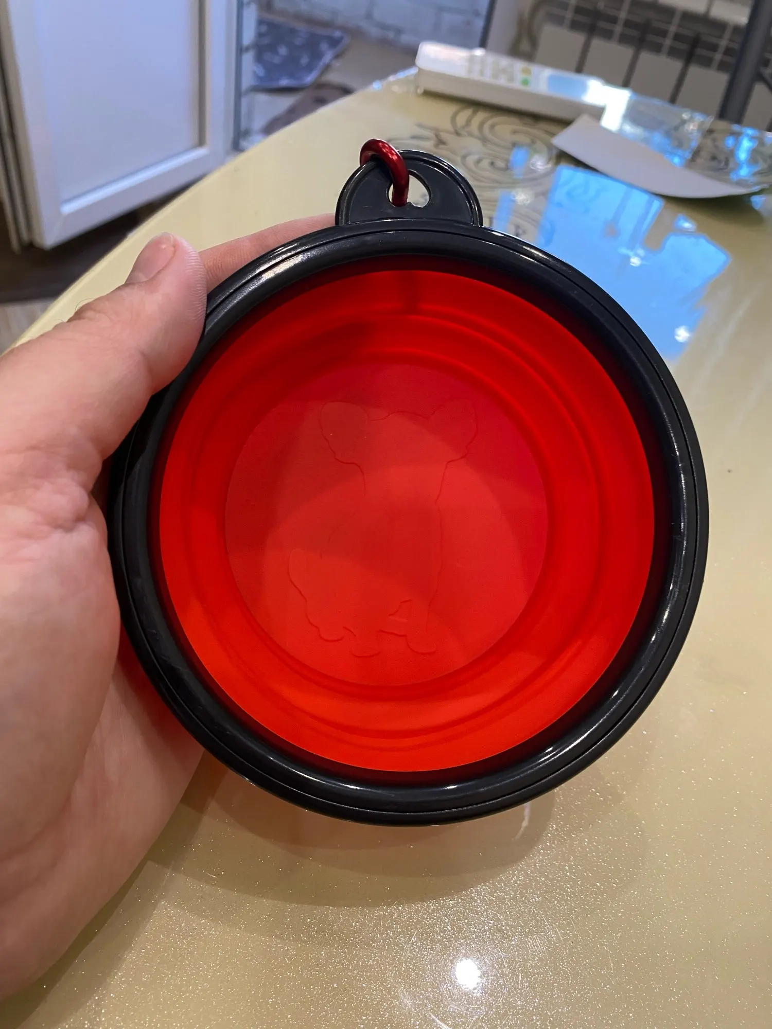 Плотная удобная миска для воды. Беру с собой на все прогулки. Раньше поила просто из бутылки с ладошки, конечно расход неэкономичный. Сейчас же очень удобно)