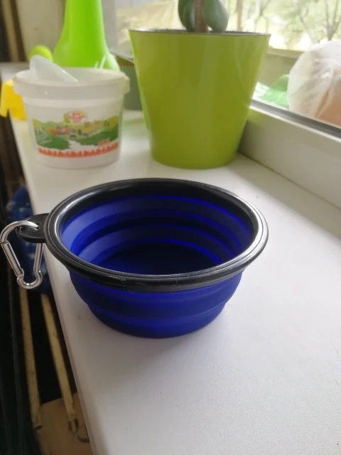 Очень быстрая доставка (combined delivery). Миска хорошего качества, в меру упругий силикон, держит форму. По размеру как миска для средней по размеру собаки. Думаю для походов и прогулок будет прекрасно!)