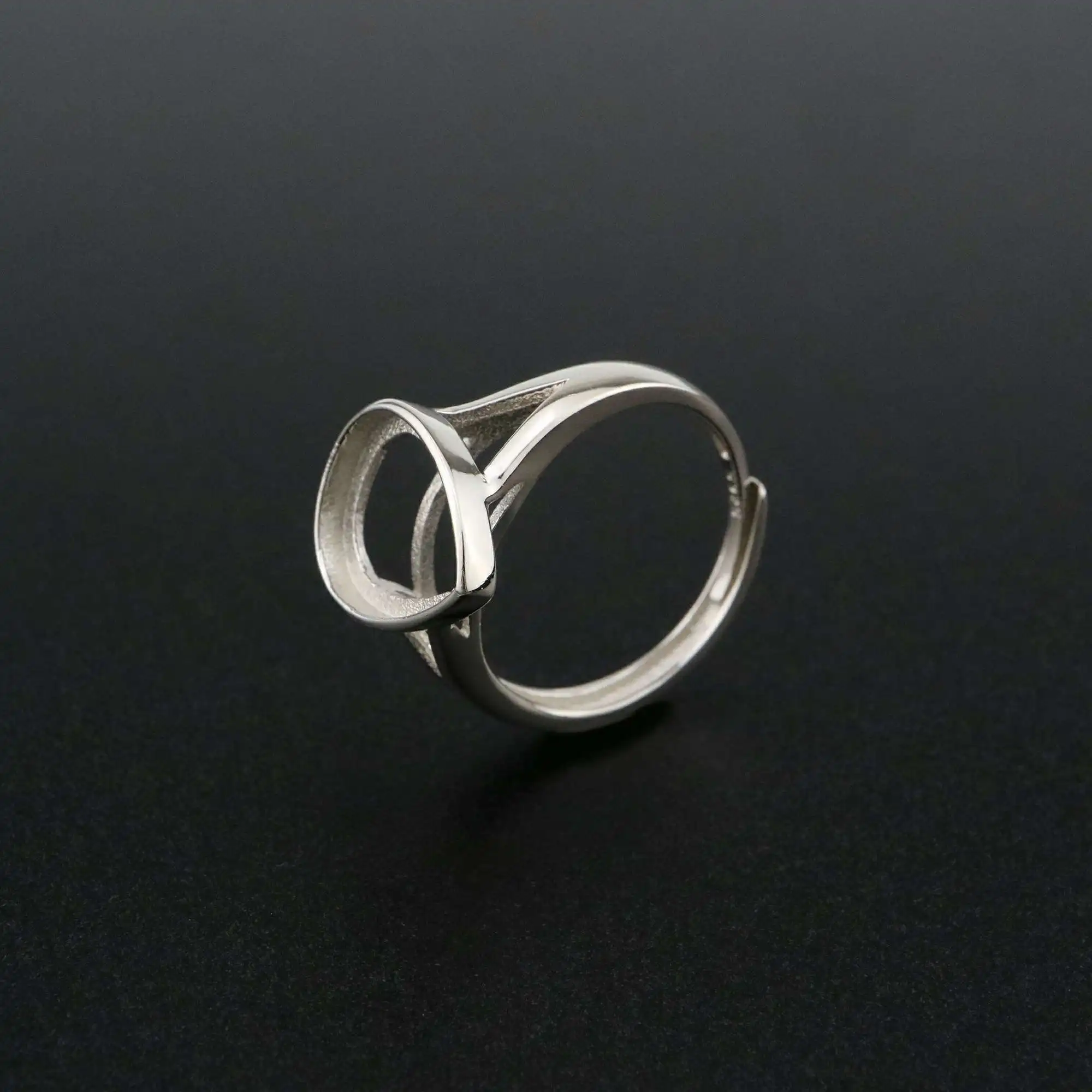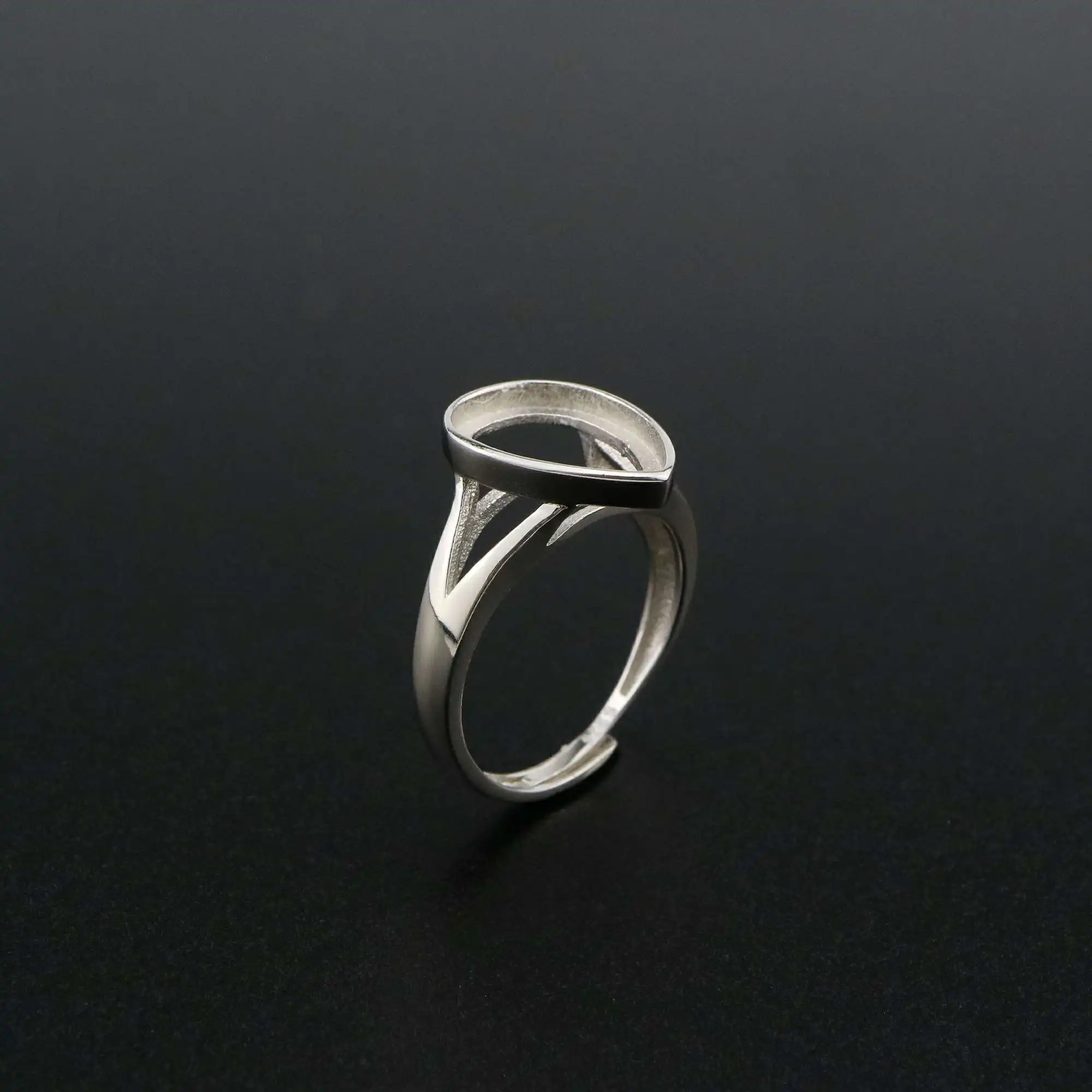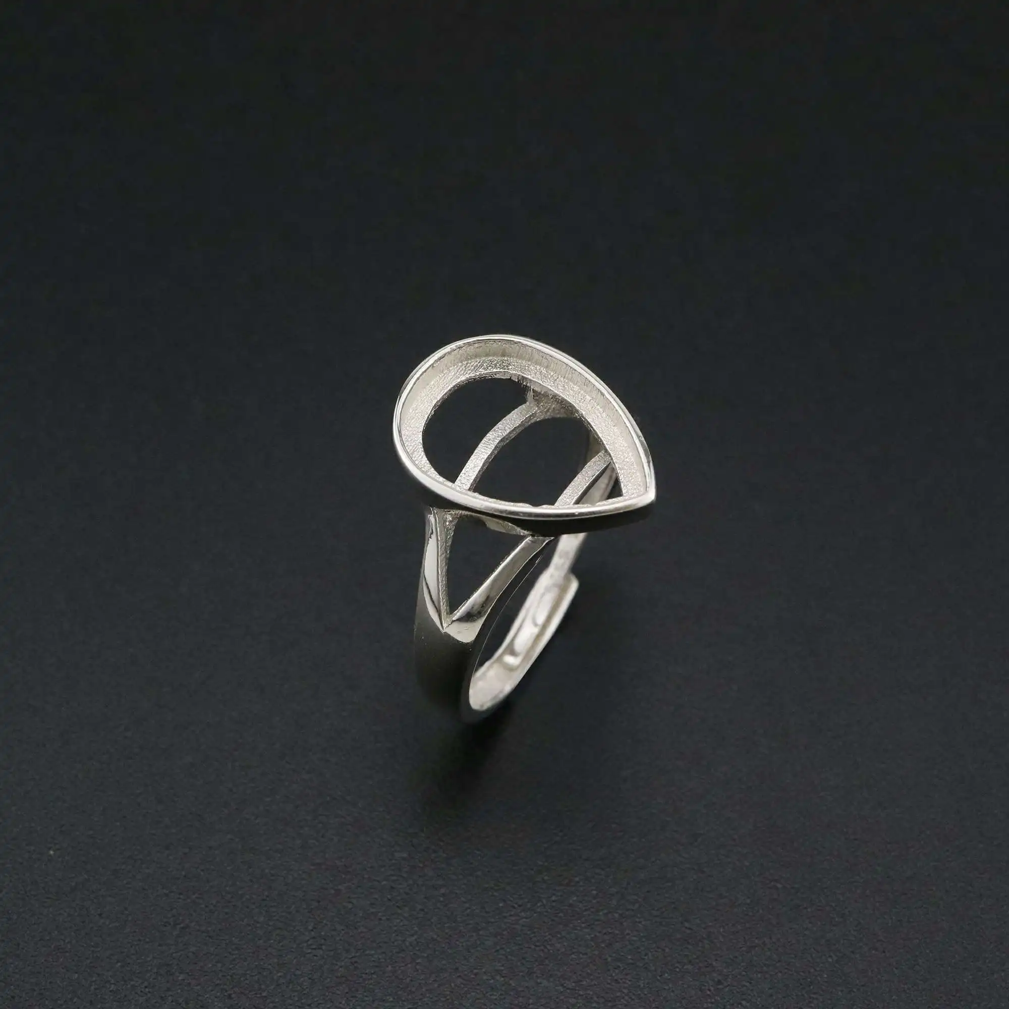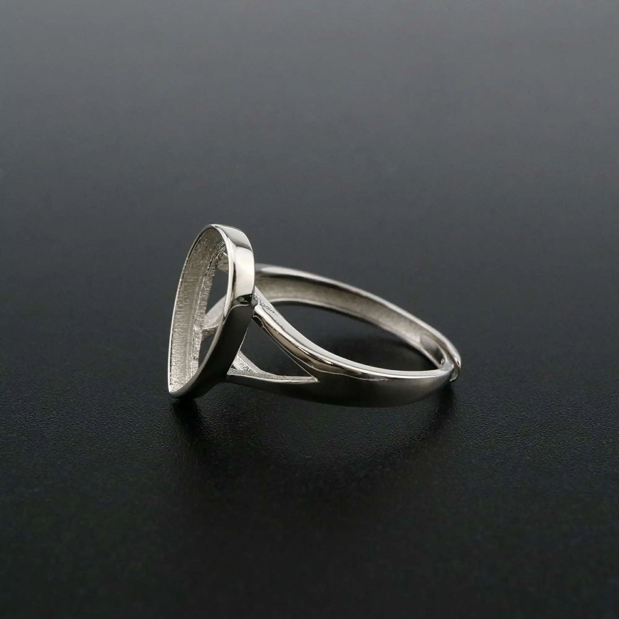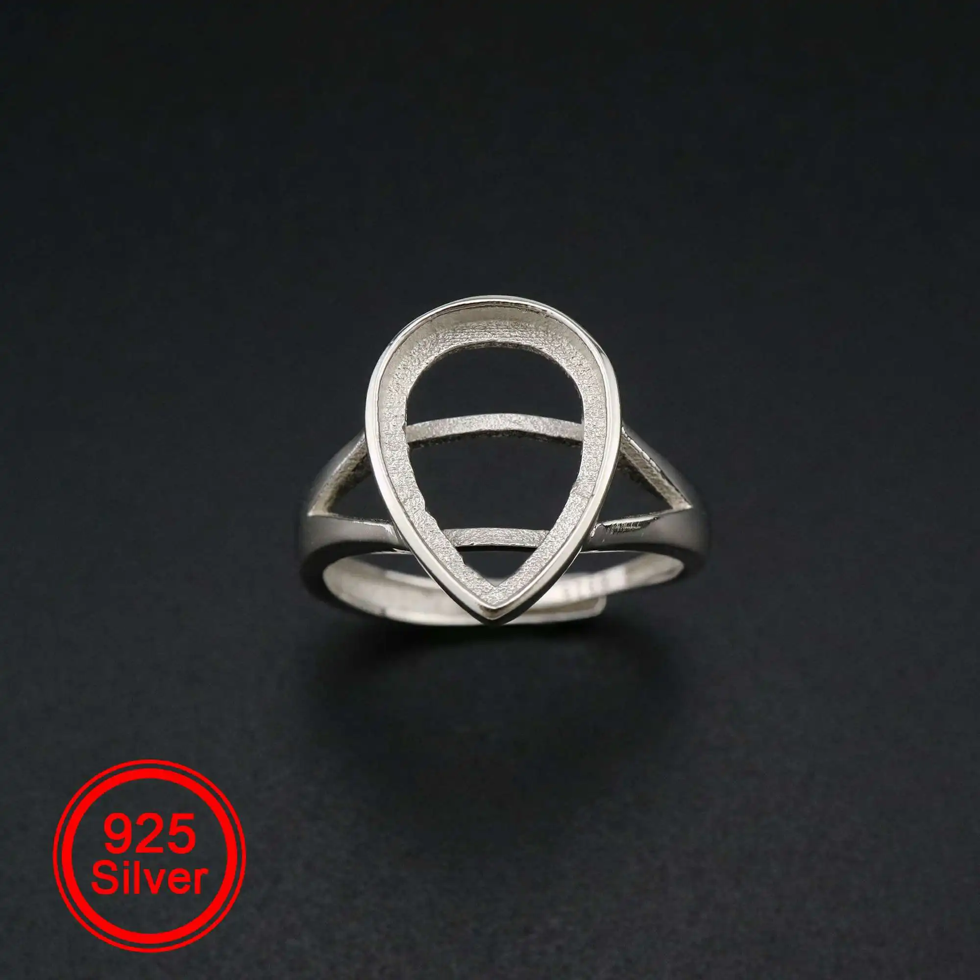 Груша ободок настройки кольца пустой Регулируемый простой сплит хвостовик сплошной 925 пробы серебряный DIY лоток для Кабошона Драгоценных Камней 1294180
