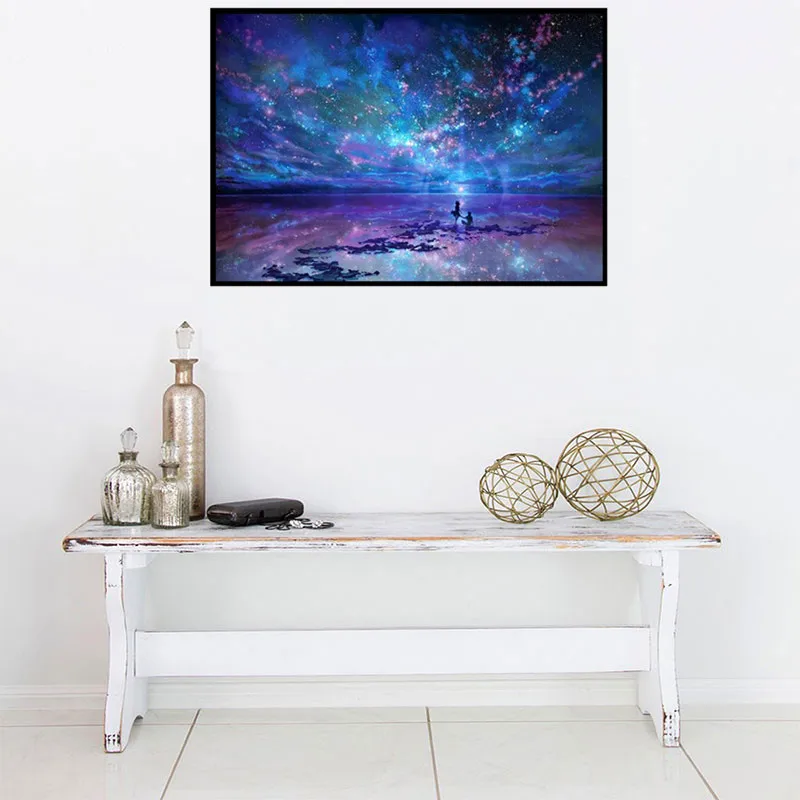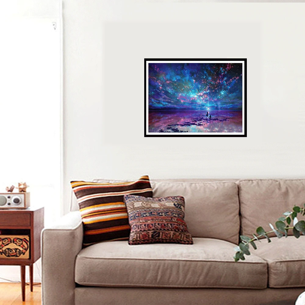 Алмазная 5D живопись сделай сам, пейзаж, звездное небо, круглая стразы, вышивка крестиком, украшение для дома