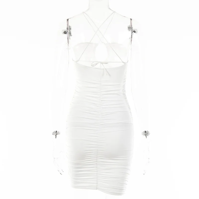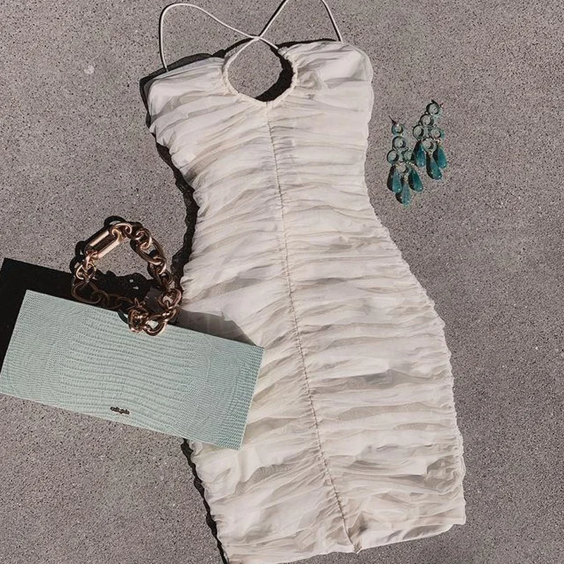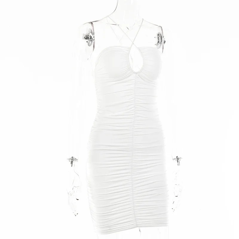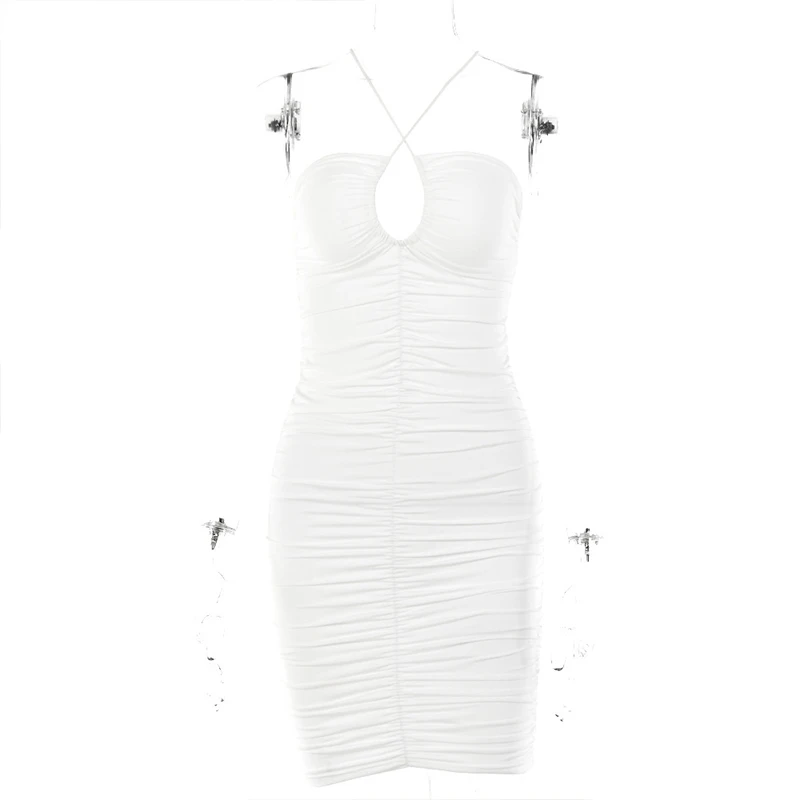 Мини-платье женское однотонное с лямкой на шее и открытой спиной