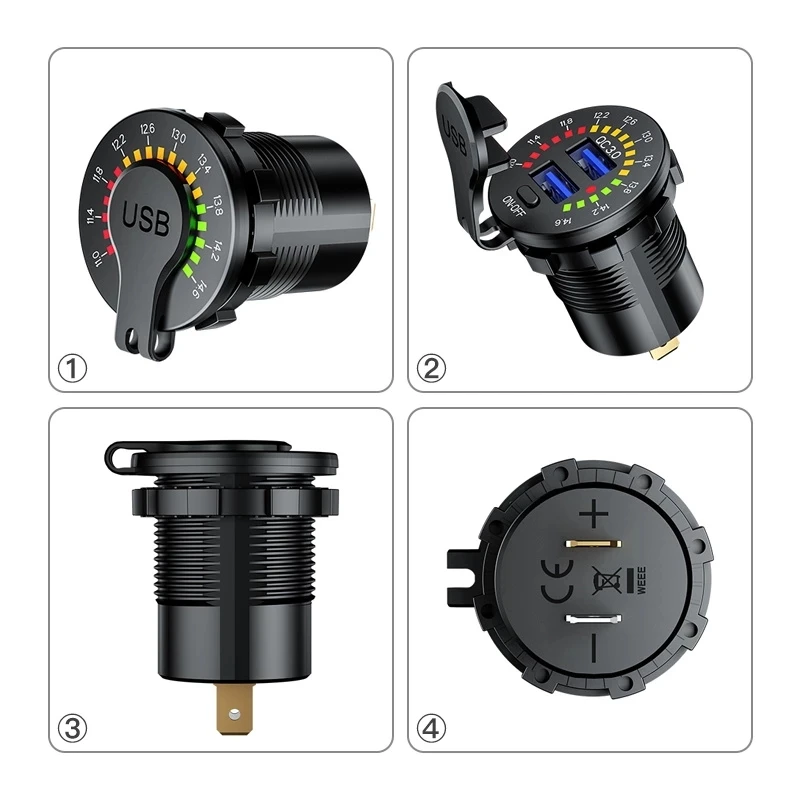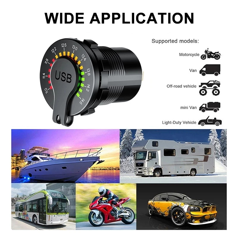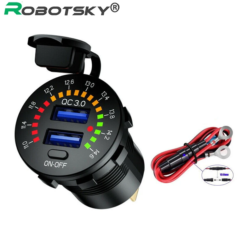 Автомобильное зарядное устройство 12 В, 24 В, быстрая зарядка 3,0, автомобильное зарядное устройство с двумя USB-портами, водонепроницаемое автомобильное зарядное устройство 18 Вт с USB, автомобильное зарядное устройство со светодиодным вольтметром и переключателем вкл.выкл.