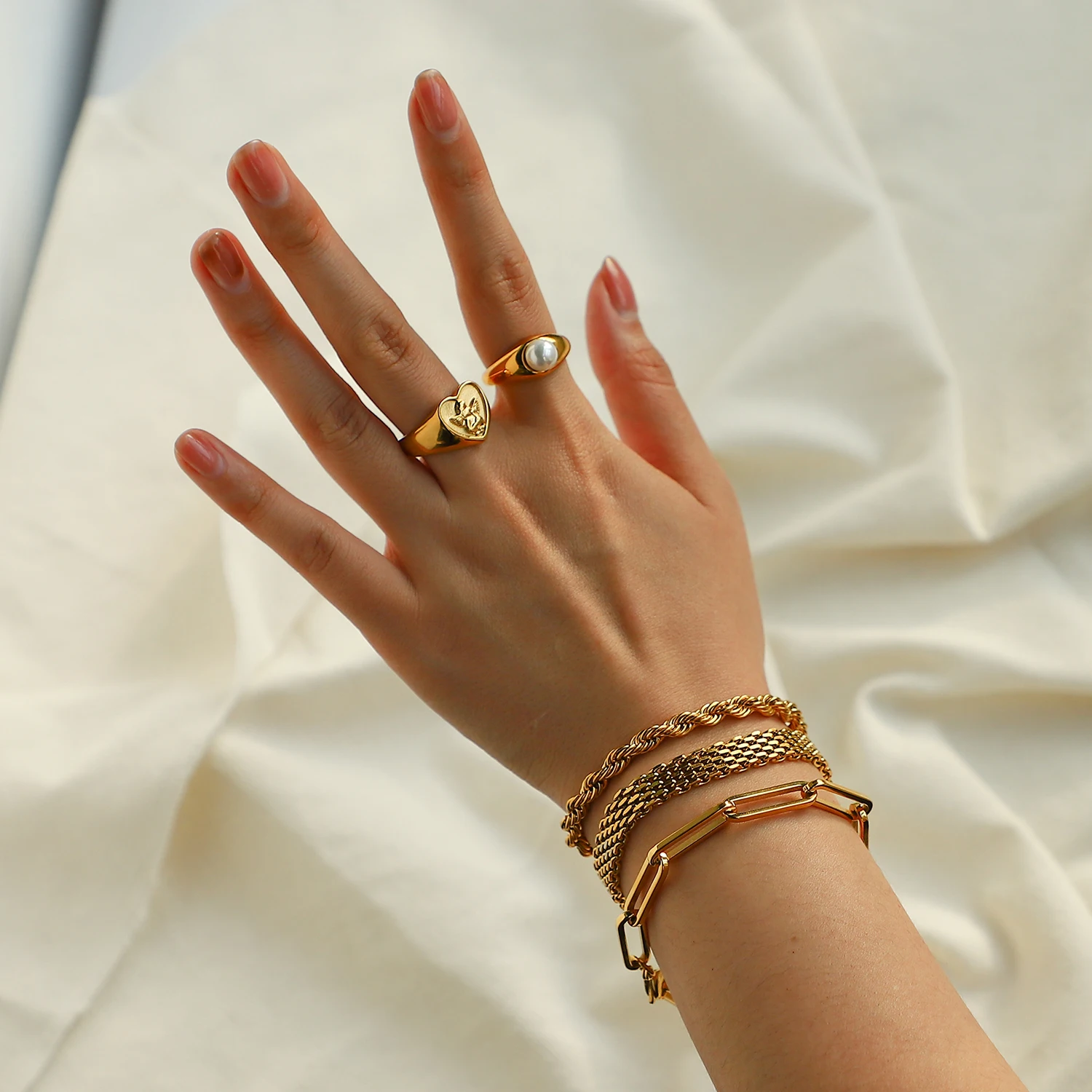 316L нержавеющая сталь в форме сердца ангельские кольца для женщин Роскошные элегантные жемчужные круассан кольца женские ювелирные изделия для помолвки