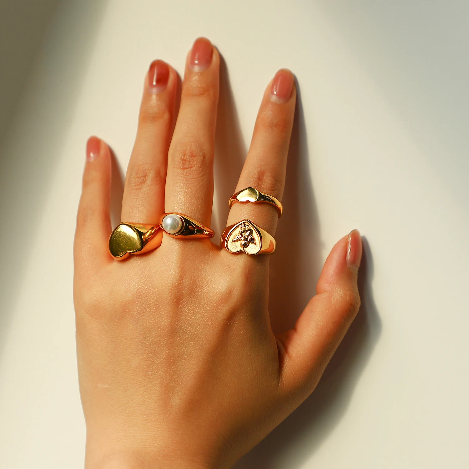 Кольца с круассанами, позолоченные, из нержавеющей стали 316L, коль...
