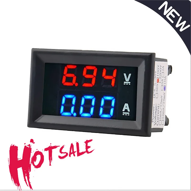 Цифровой вольтметр, амперметр, цифровой вольтметр, амперметр, DC 100 в 10 А, синий + красный, с двойным амперметром, светодиодный дисплей