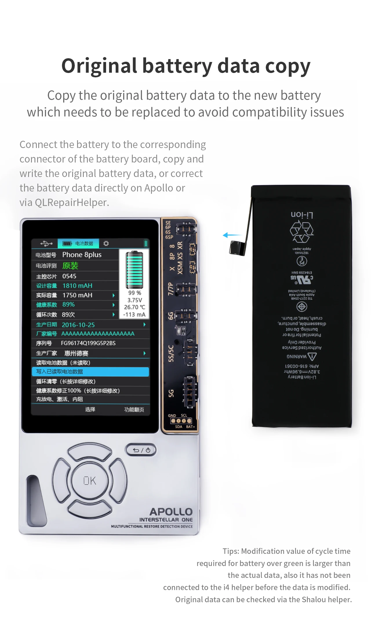 APOLLO ONE восстанавливает Обнаружение хранилища для 7-11ProMax, оригинальное Обнаружение цветной линии данных, код аккумулятора, базовый Диапазон чтения и записи