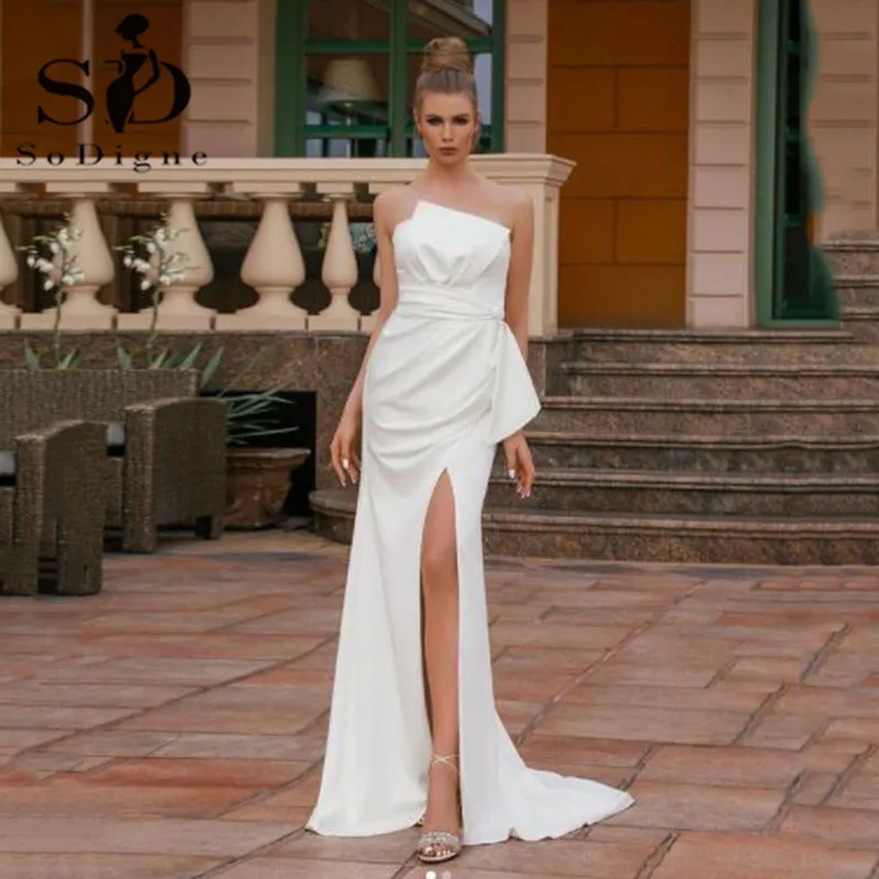 Женское вечернее платье без бретелек, с высоким разрезом сбоку