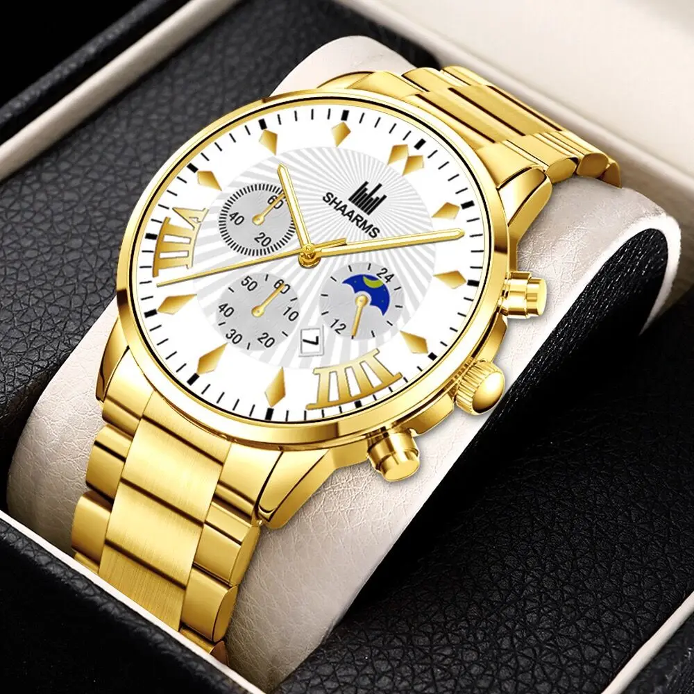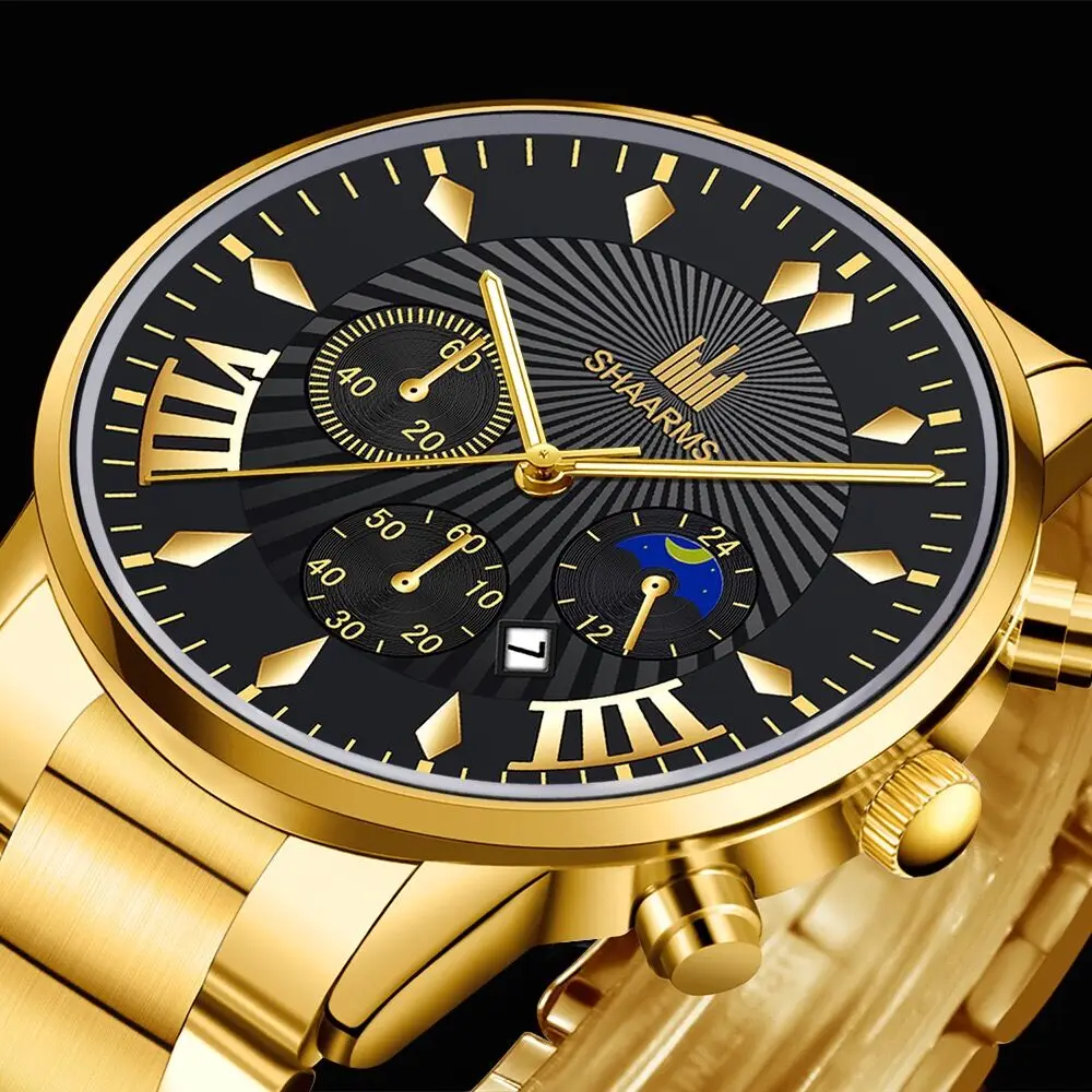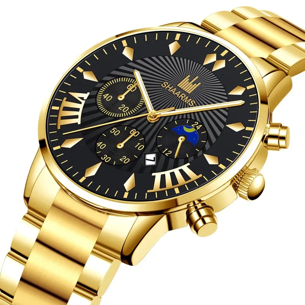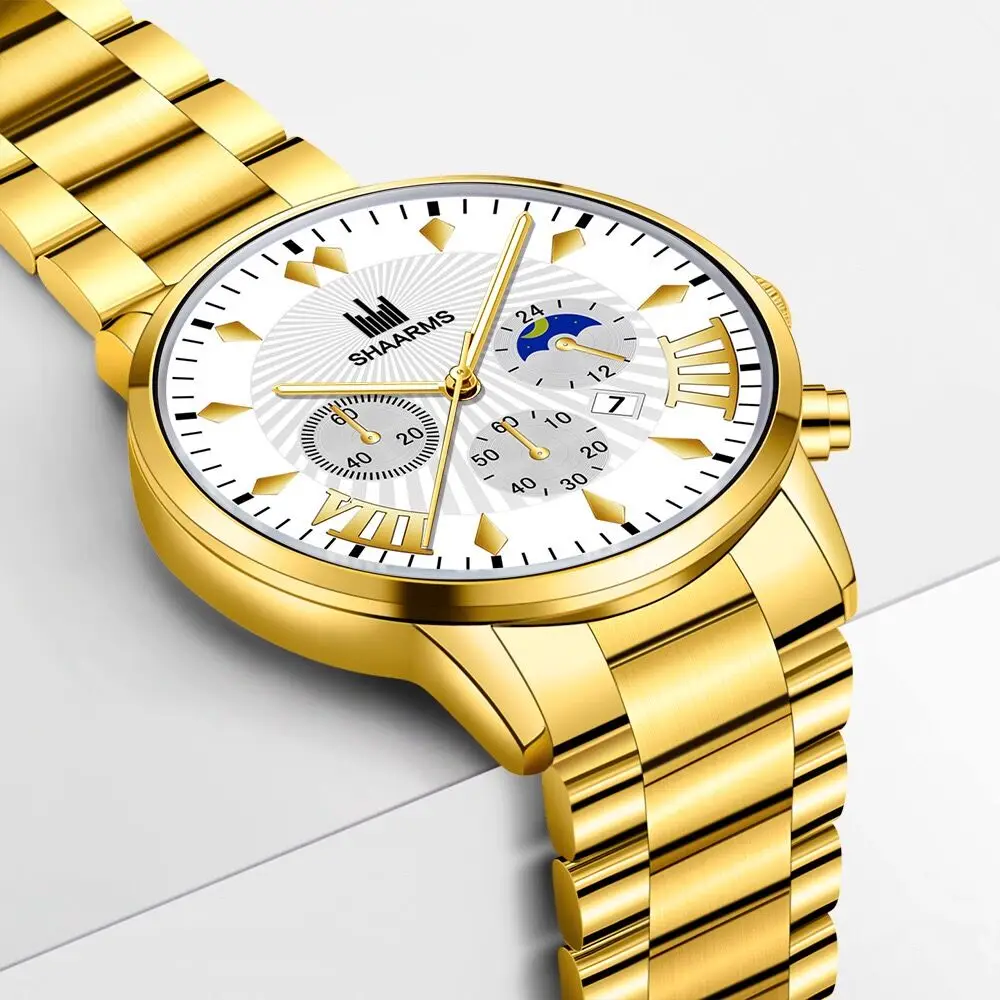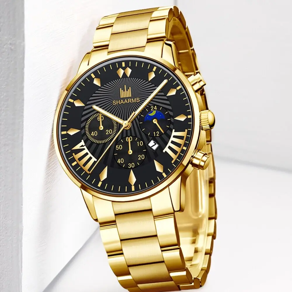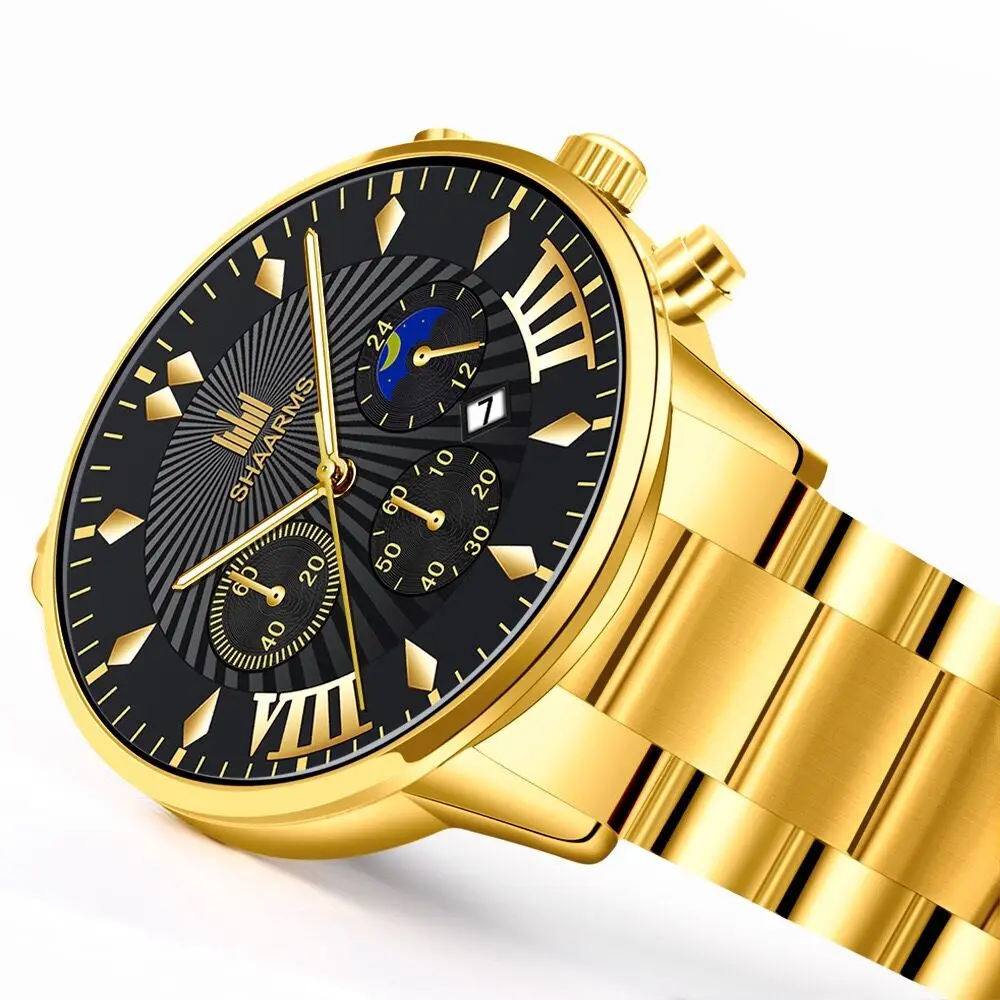 Мужские золотые часы Orologio Uomo с календарем, модные деловые часы из нержавеющей стали, повседневные кварцевые часы, мужские часы