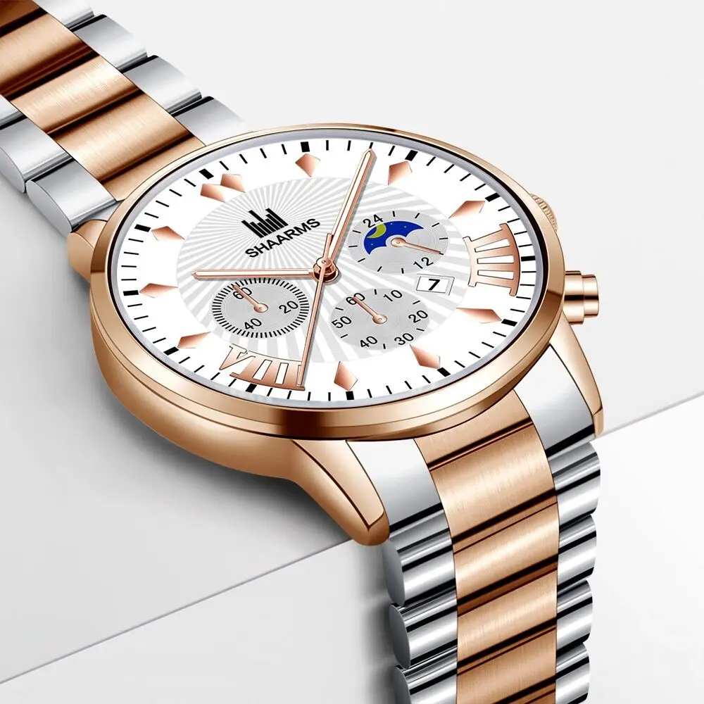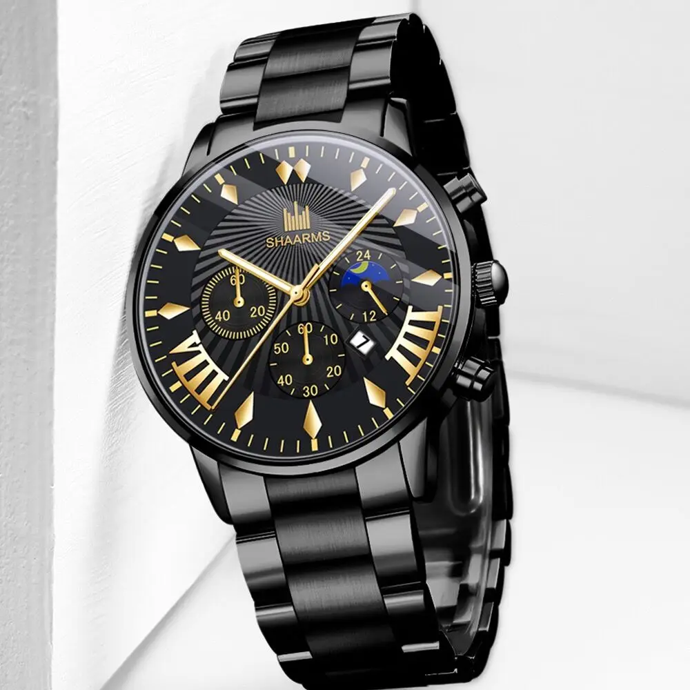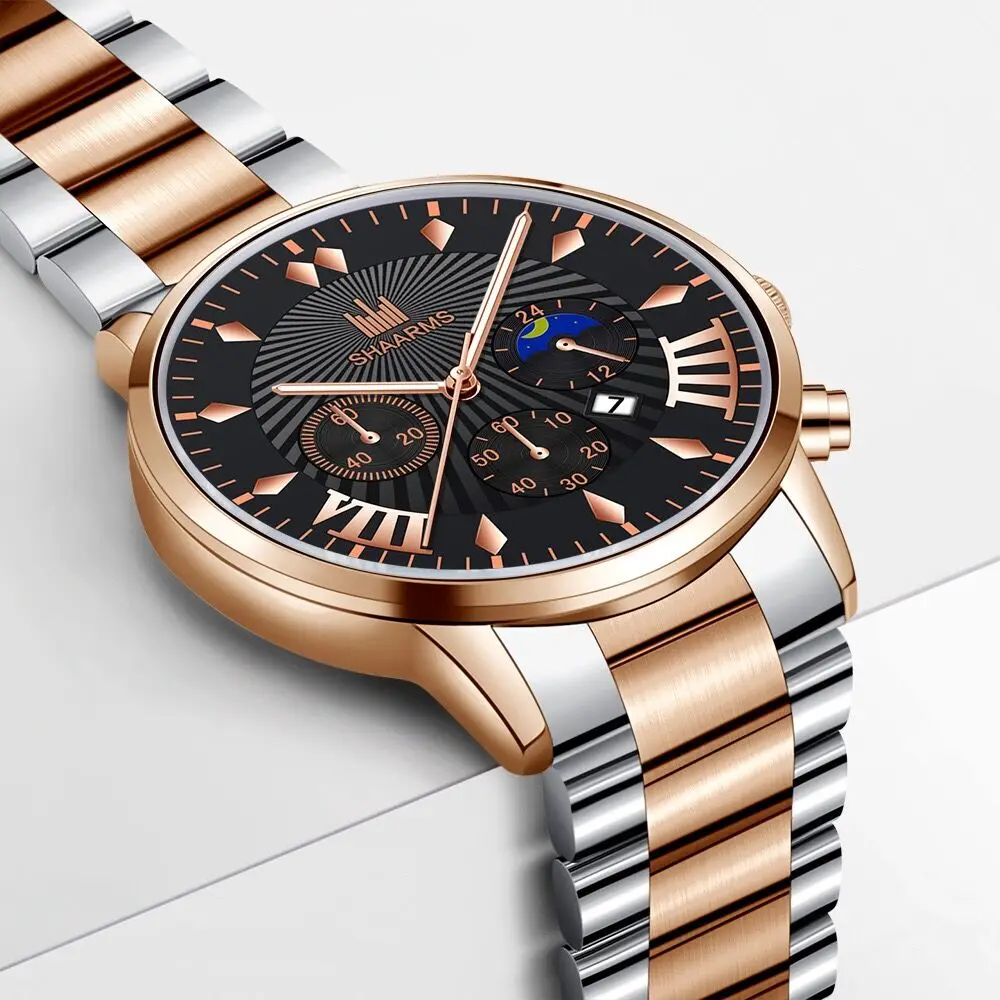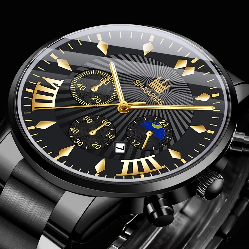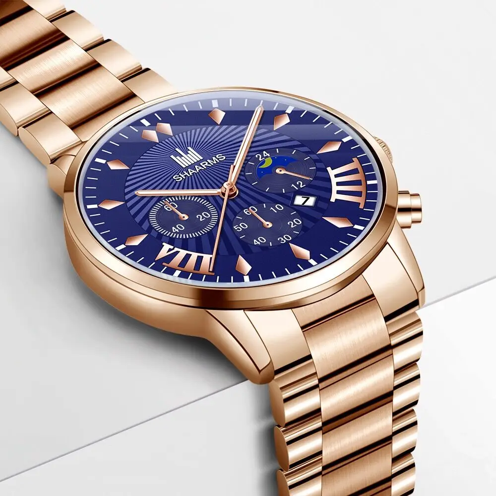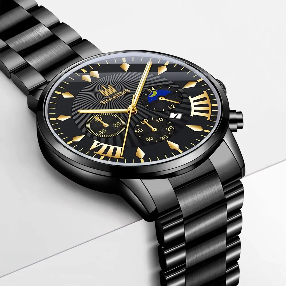 Мужские золотые часы Orologio Uomo с календарем, модные деловые часы из нержавеющей стали, повседневные кварцевые часы, мужские часы
