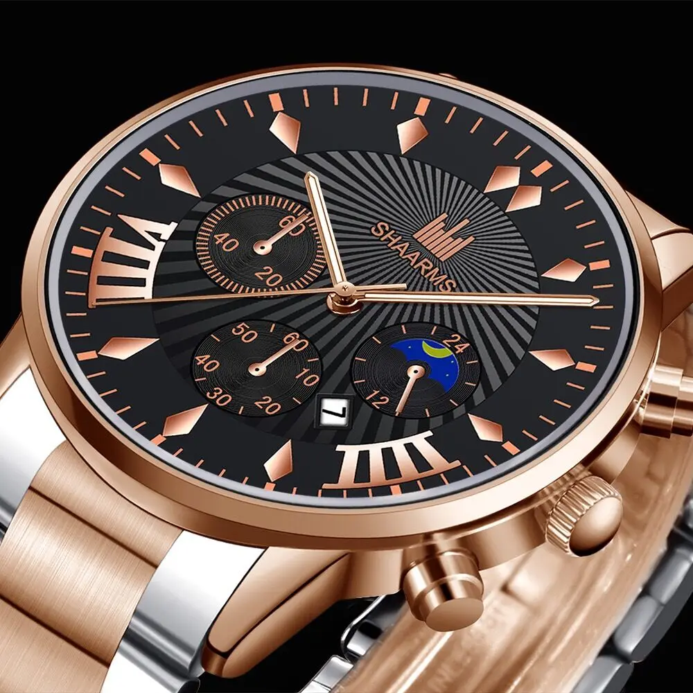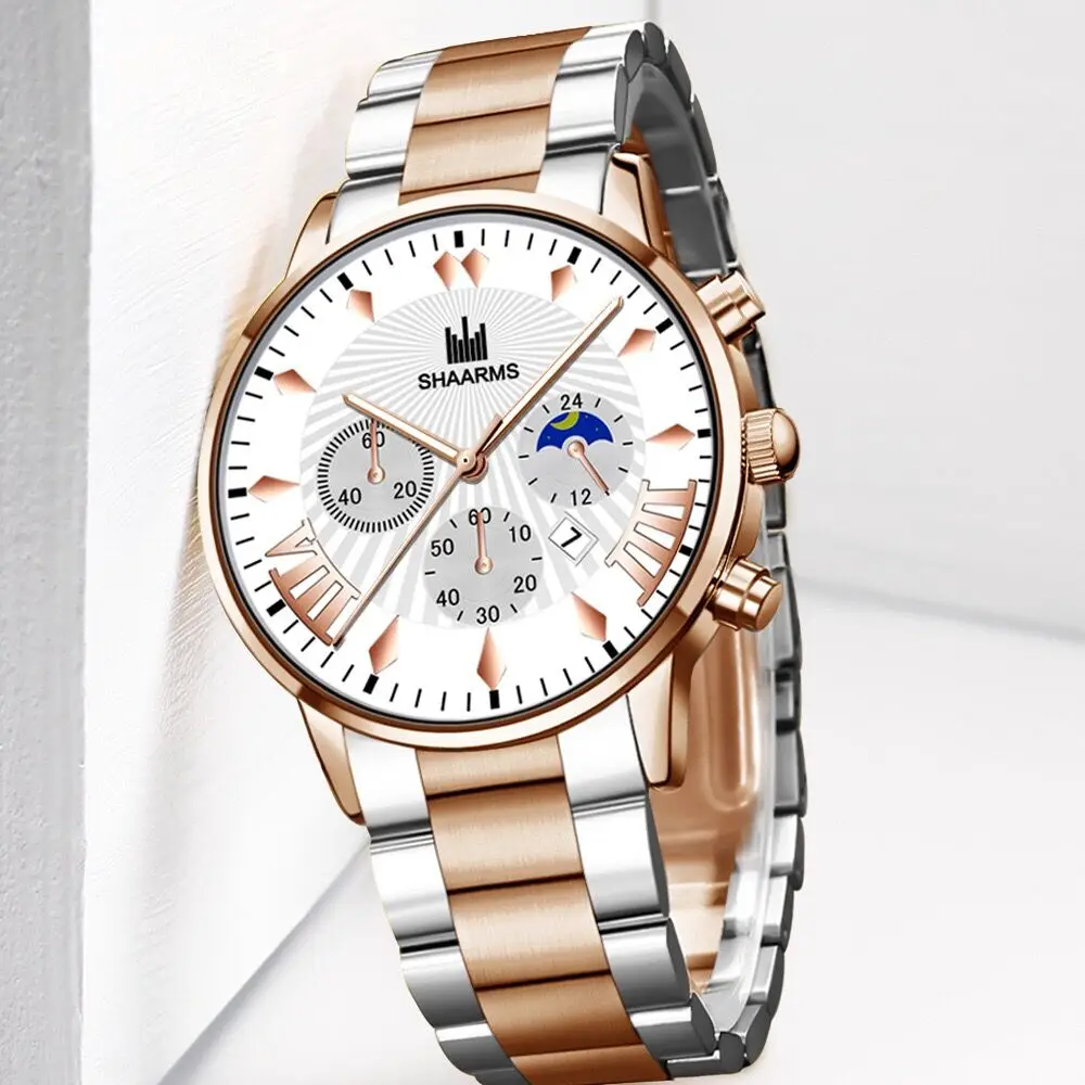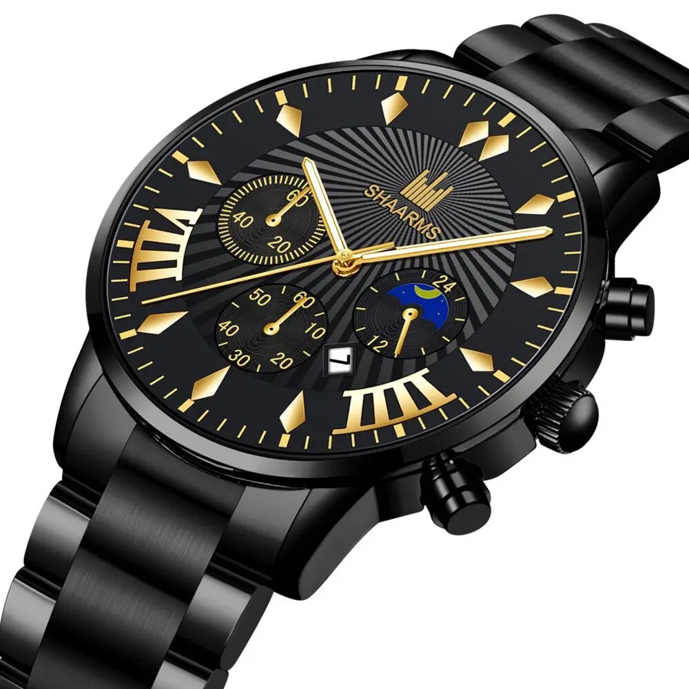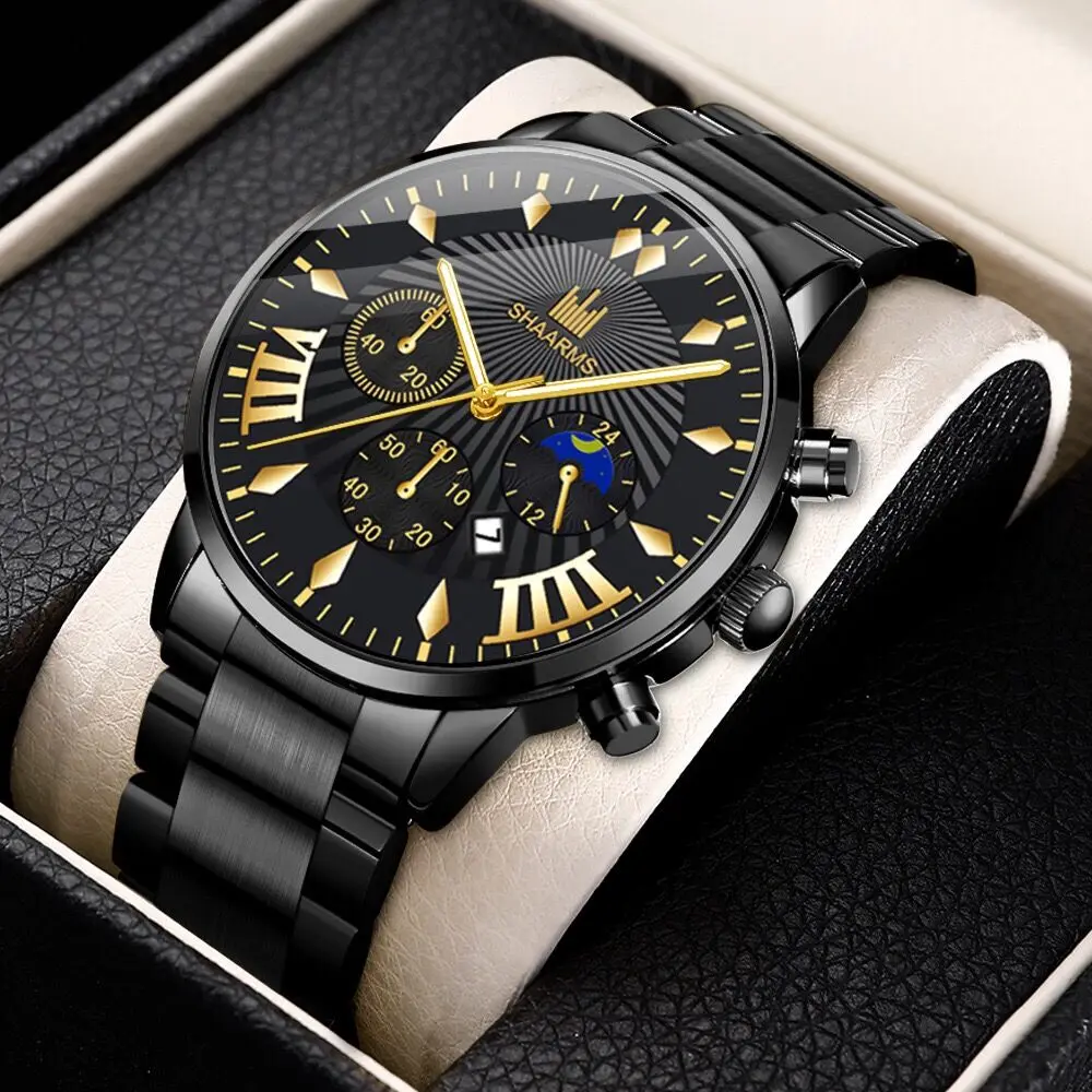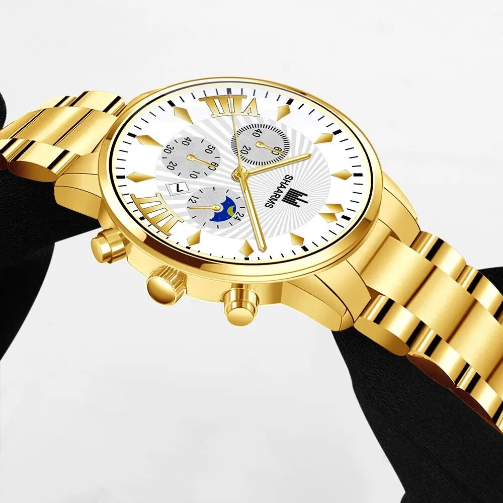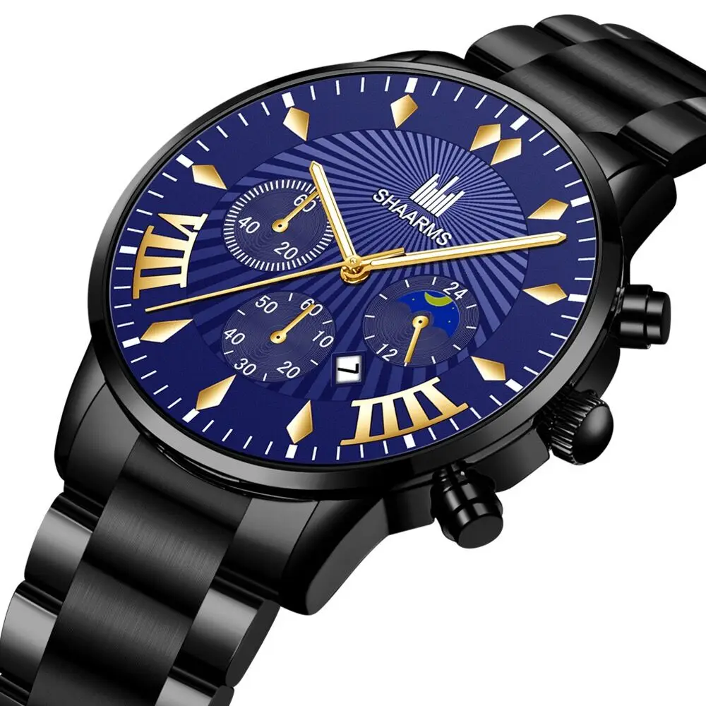 Мужские золотые часы Orologio Uomo с календарем, модные деловые часы из нержавеющей стали, повседневные кварцевые часы, мужские часы