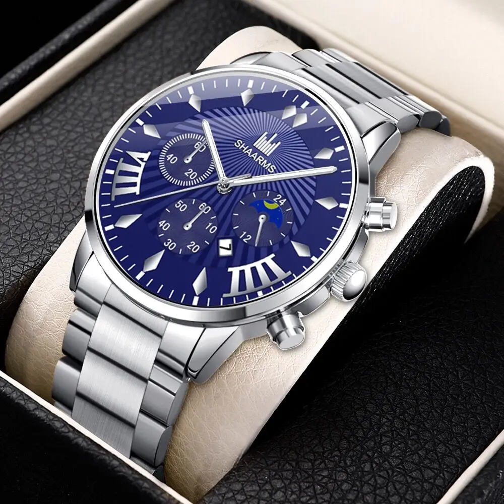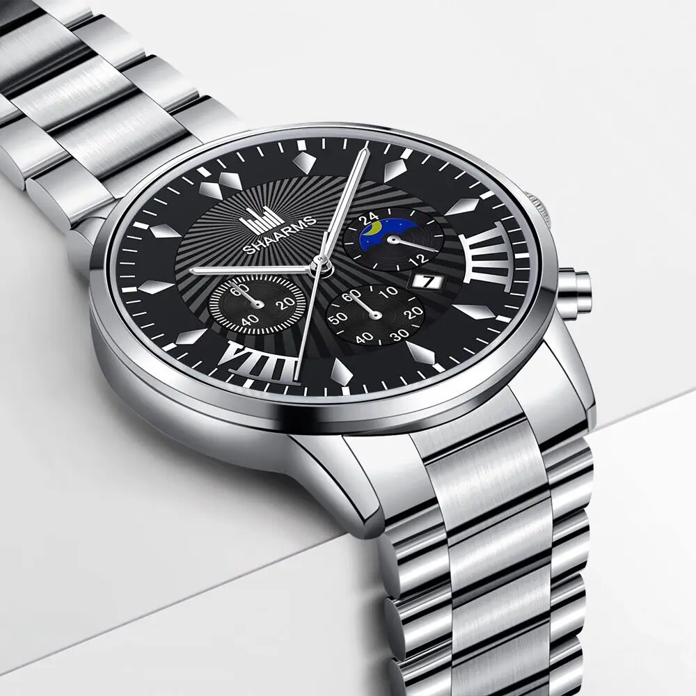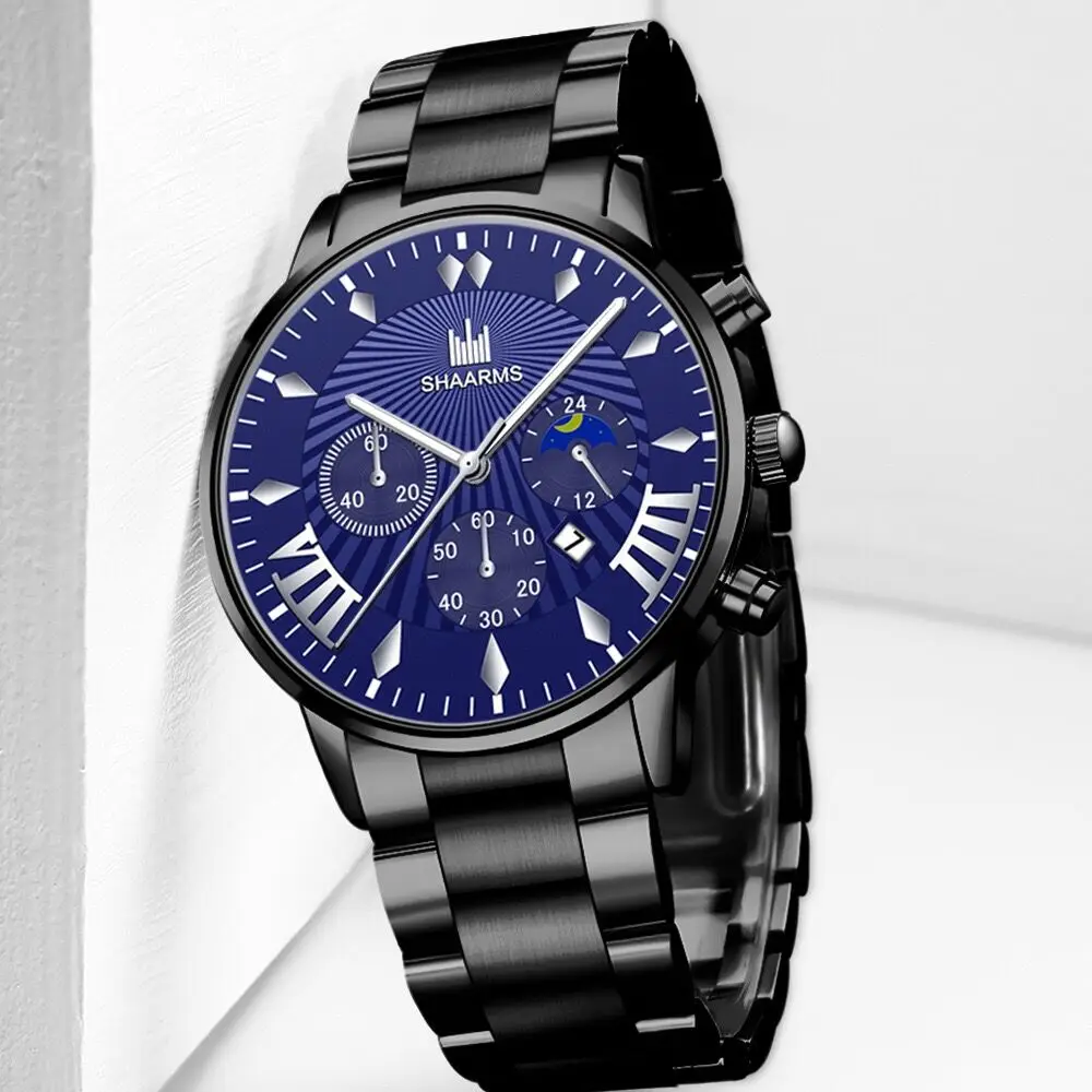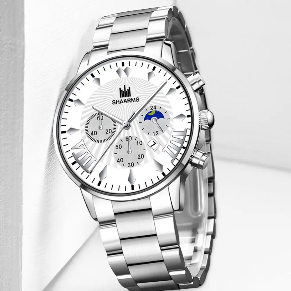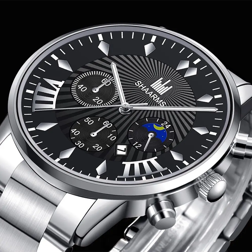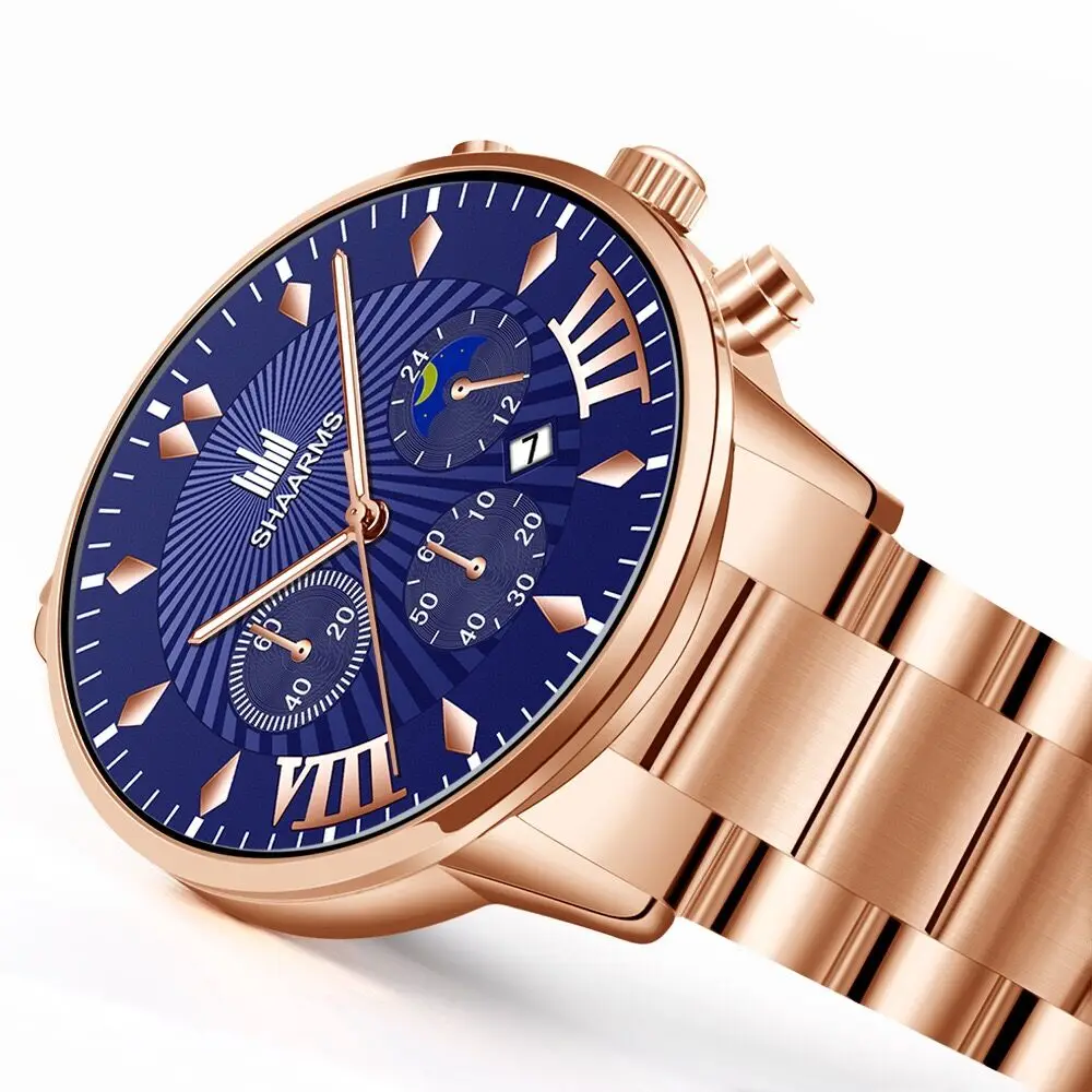 Мужские золотые часы Orologio Uomo с календарем, модные деловые часы из нержавеющей стали, повседневные кварцевые часы, мужские часы