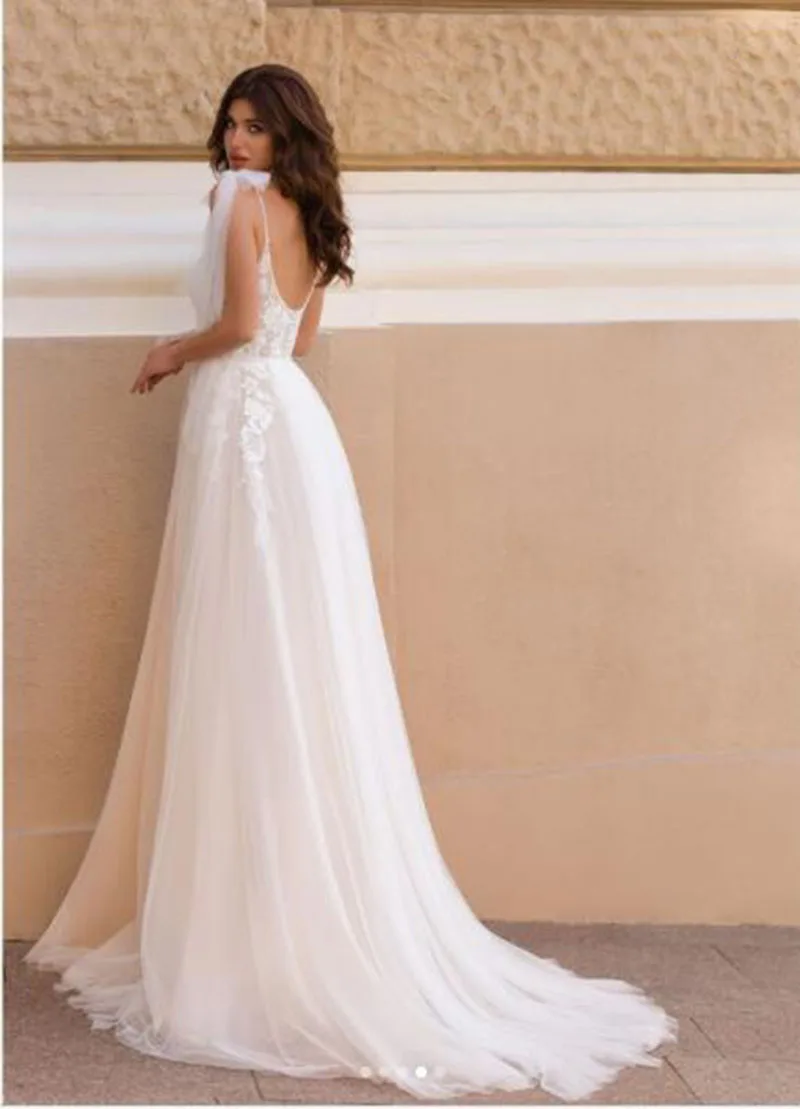 Простые Свадебные платья 2021 сексуальные с V-образным вырезом съем...