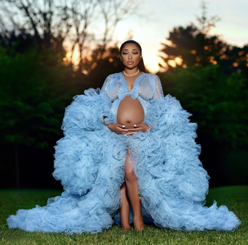 Свадебные пушистые тюлевые халаты для беременных на заказ небесно-г...