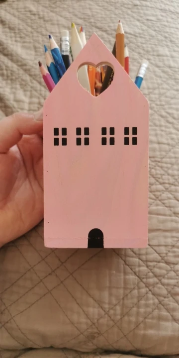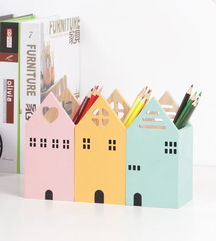 Милый деревянный держатель для ручек в форме домика, настольный орг...
