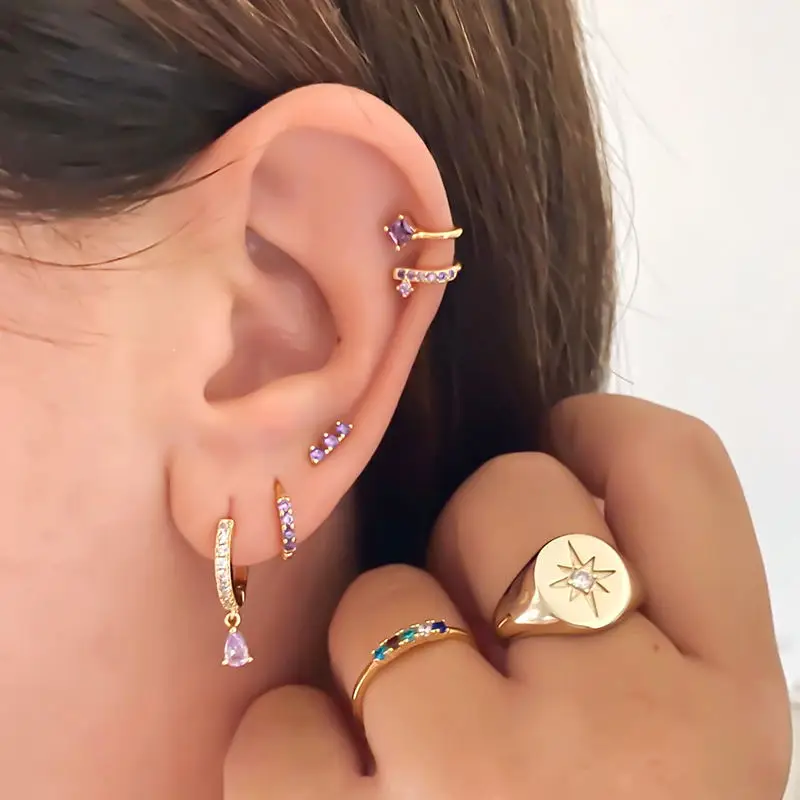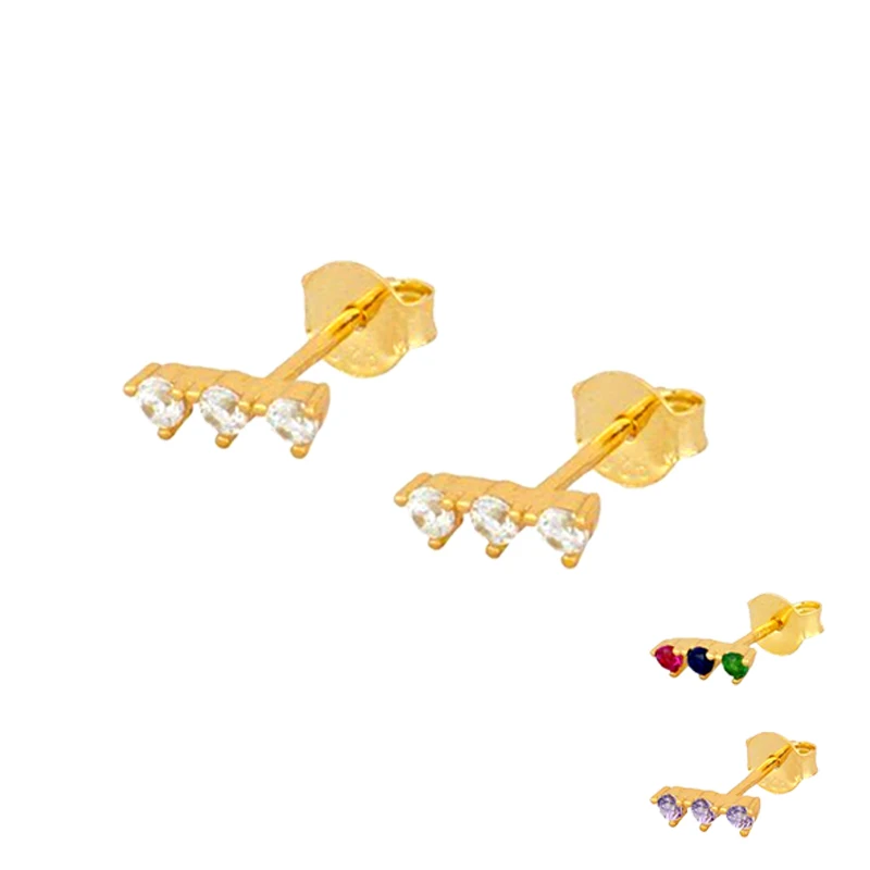 Женские серьги-гвоздики из стерлингового серебра 925 пробы, геометрические простые крошечные серьги с кристаллами CZ, модные вечерние ювелирные изделия