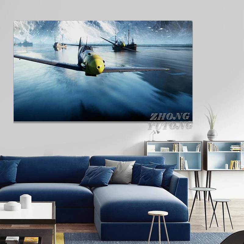 Постеры на холсте в стиле милитари с изображением истребителей на р...