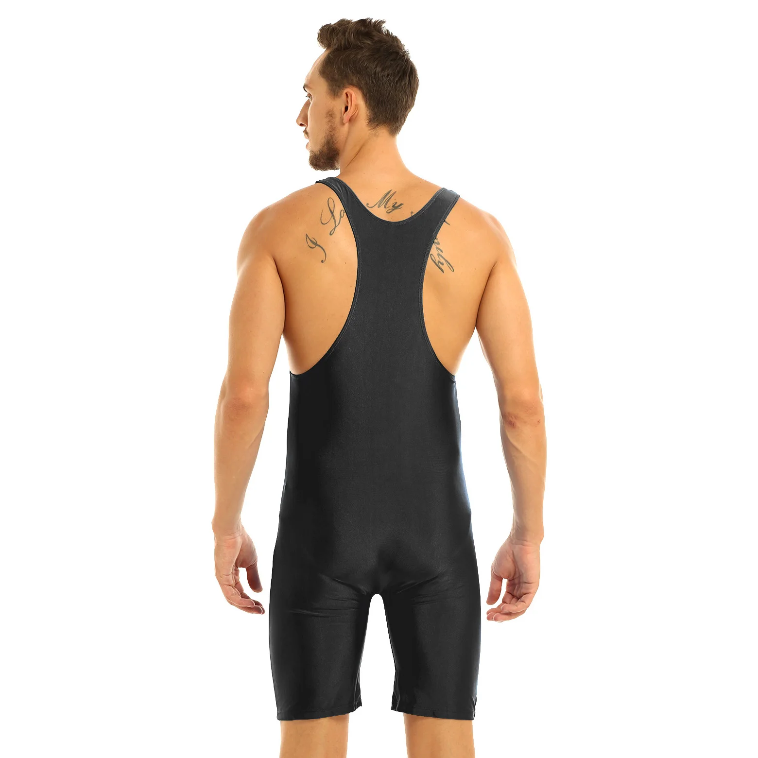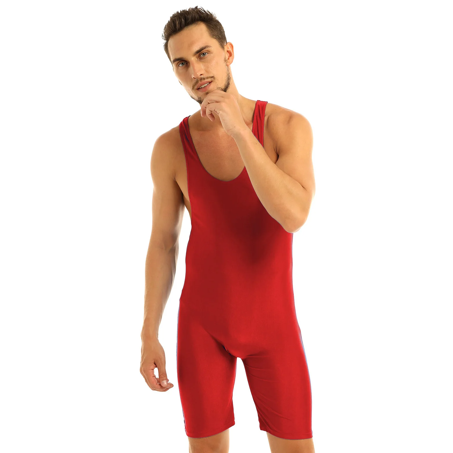 Мужской Эластичный Борцовский комбинезон без рукавов, спортивный комбинезон, однотонный комбинезон, бикетард, танцевальная одежда, балетные гимнастические леотарды