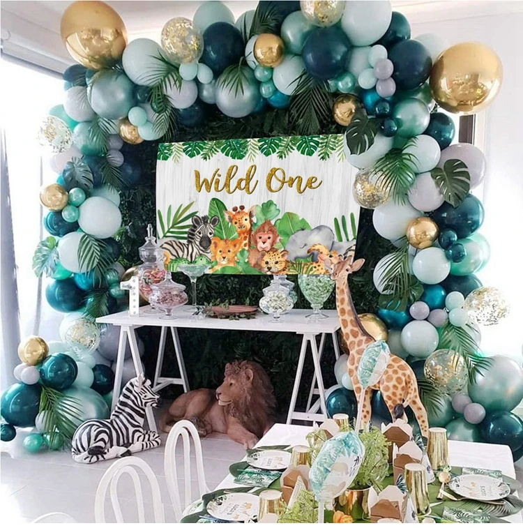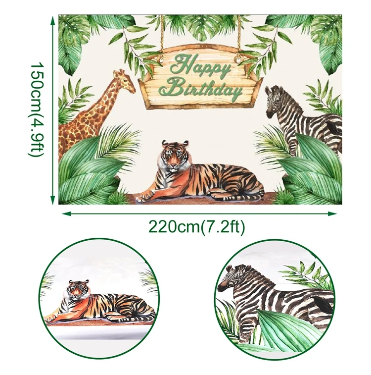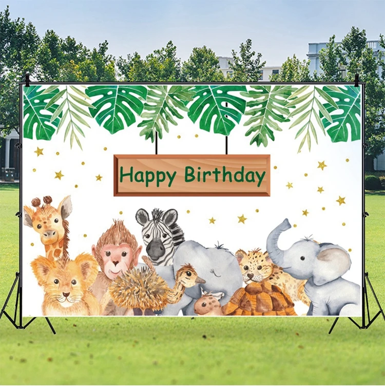 Джунгли животные фон с днем рождения Декор для вечеринки дети дикий...