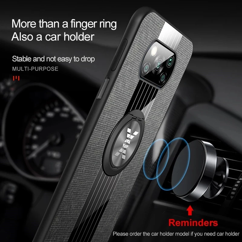 Чехол с кольцом-держателем для POCO X3 Pro, тканевая текстура, твер...