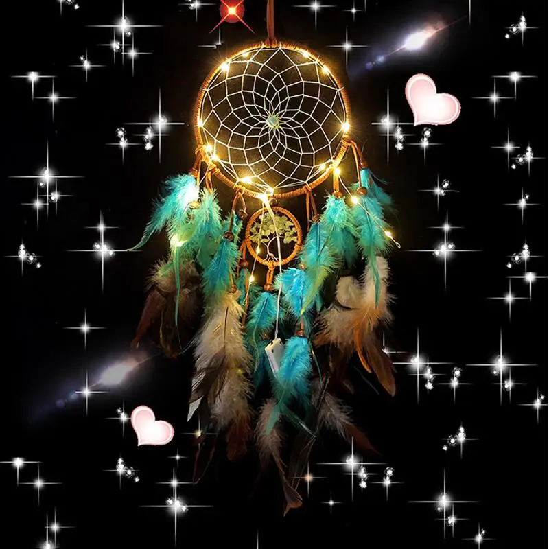 Красивый Ловец снов светодиодный с перьями, ручной работы Ловец сно...