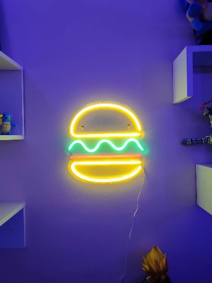 Неоновая акриловая вывеска гамбургер в форме ананаса, настенная вывеска для фаст-фуда, украшение для вечеринки, свадьбы, магазина, ресторана, дня рождения, дома