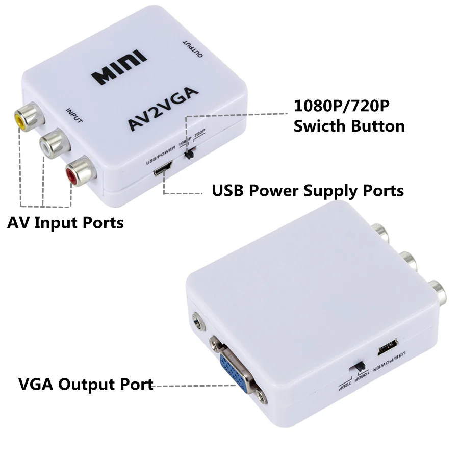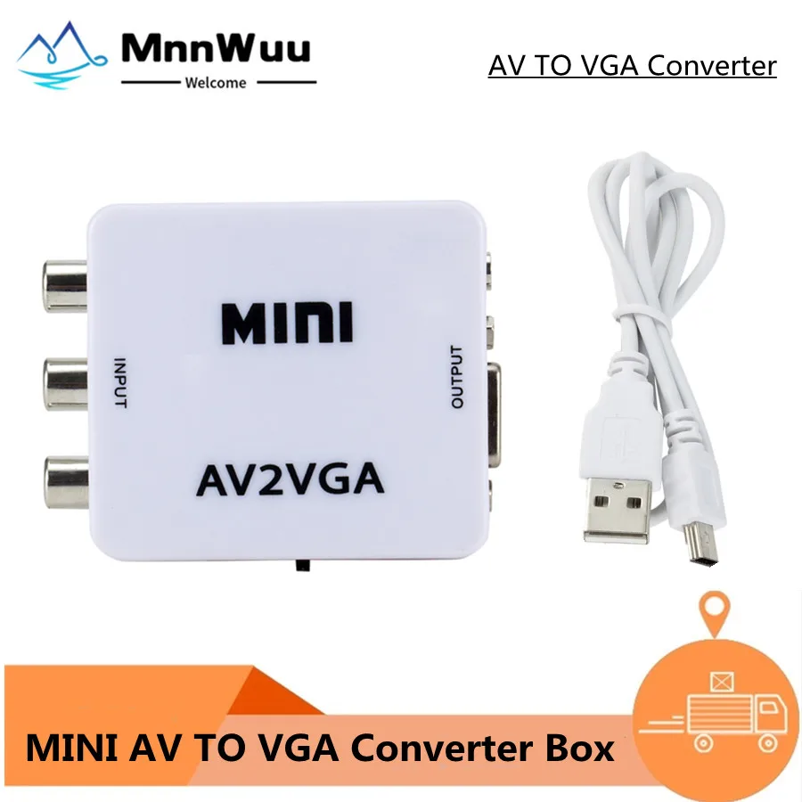 Мини-преобразователь RCA в VGA, конвертер AV2VGA с 3,5 мм аудио RCA в VGA, видео преобразователь для ПК на ТВ HD, компьютера на телевизор