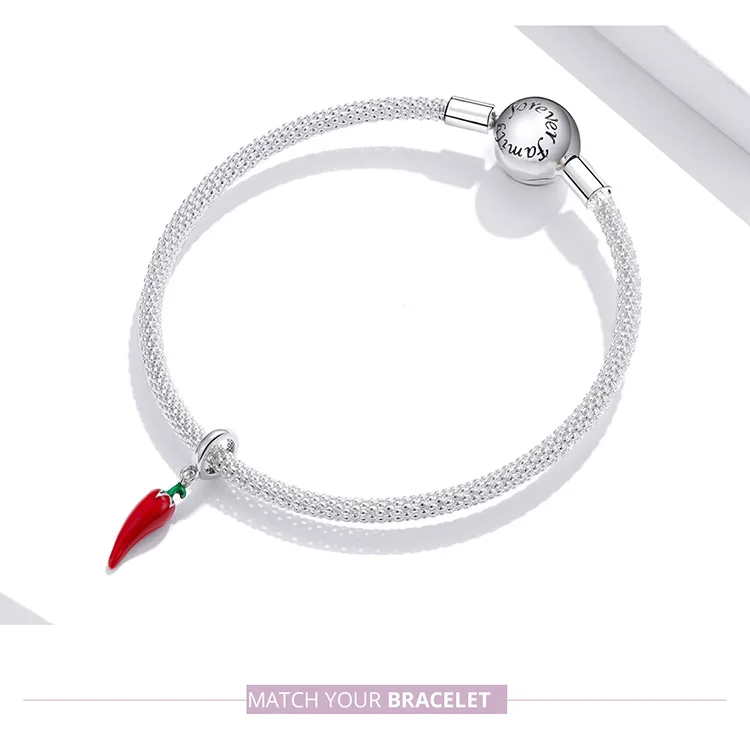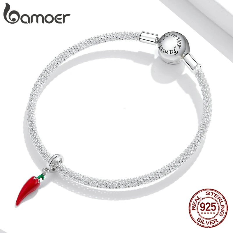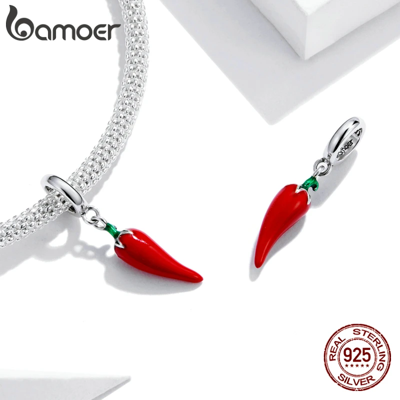 Bamoer 925 Стерлинговое Серебро миниатюрный маленький перец красное растение Подвеска для оригинального браслета браслет женщины ребенок подарок BSC461