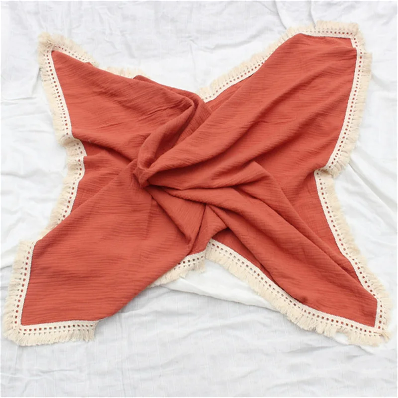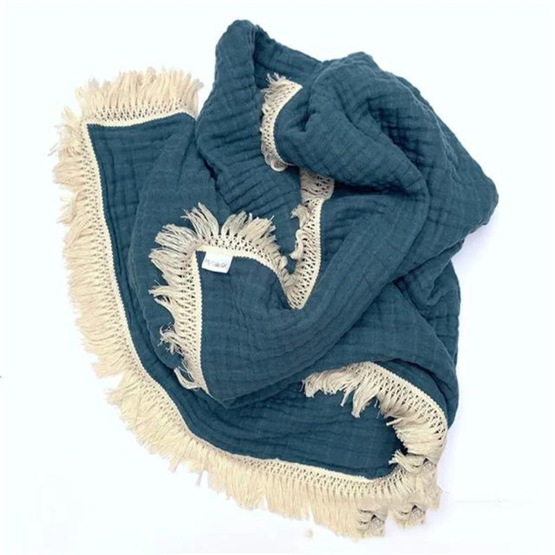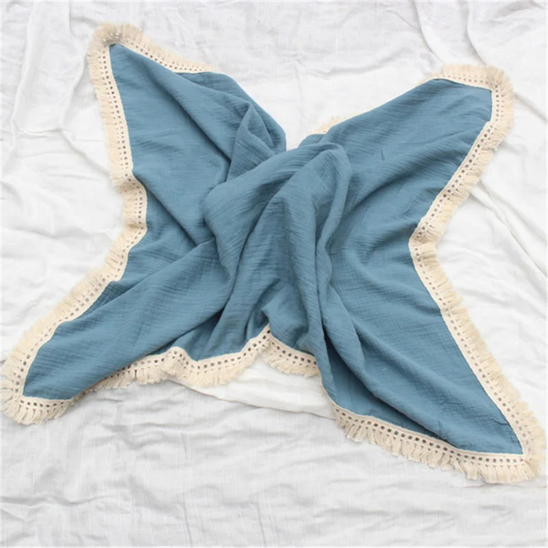 Одеяло детское из органического хлопка и муслина, банное полотенце, однотонное одеяло с кисточками для новорожденных, теплая Пеленка, двойная марля